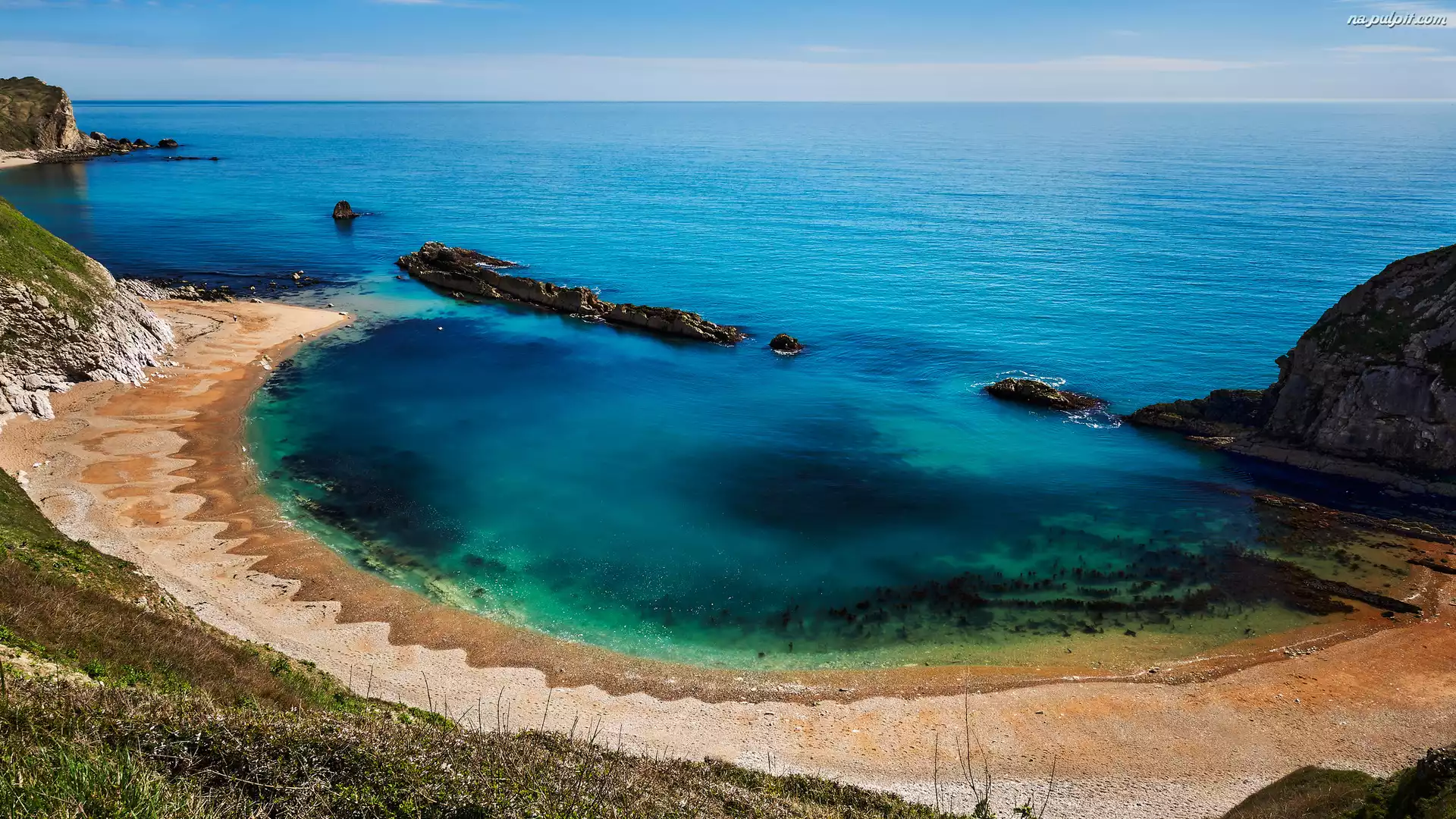 Hrabstwo Dorset, Man OWar Beach, Wybrzeże, Plaża, Morze, Anglia Na Pulpit