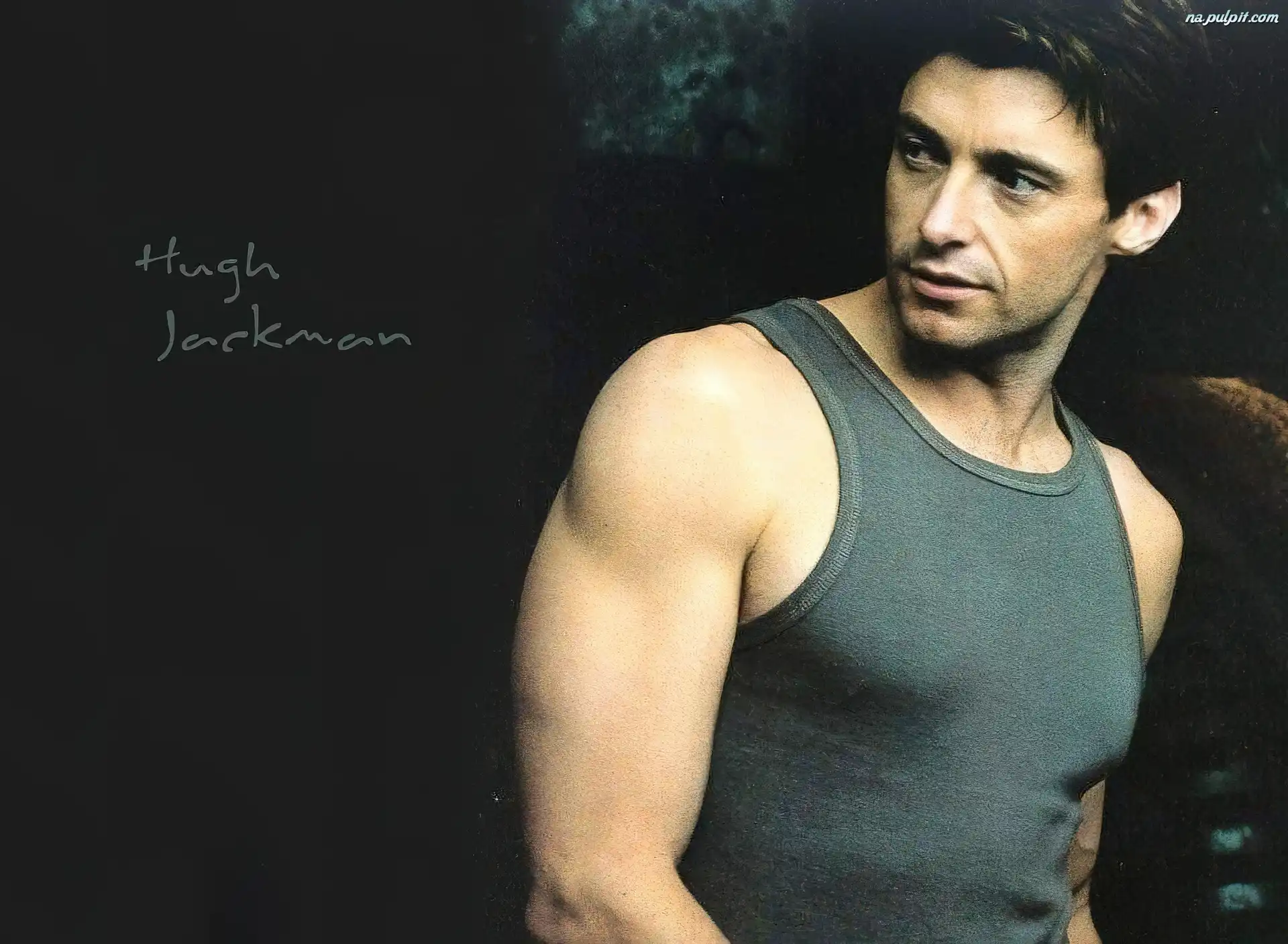 Hugh Jackman, szara koszulka Na Pulpit