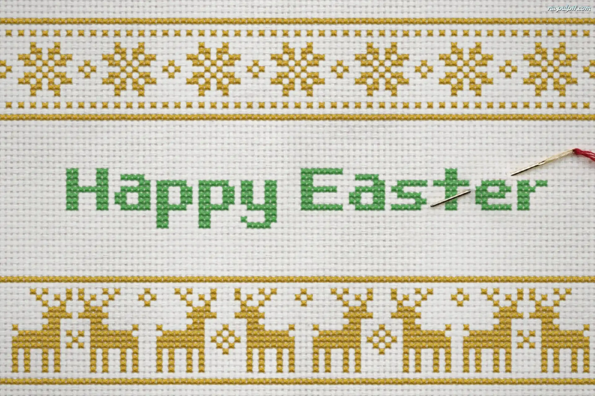Makatka, Igła, Nitka, Napis, Haft, Happy Easter