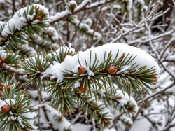 Zima, Ośnieżona, Gałązka, Iglak