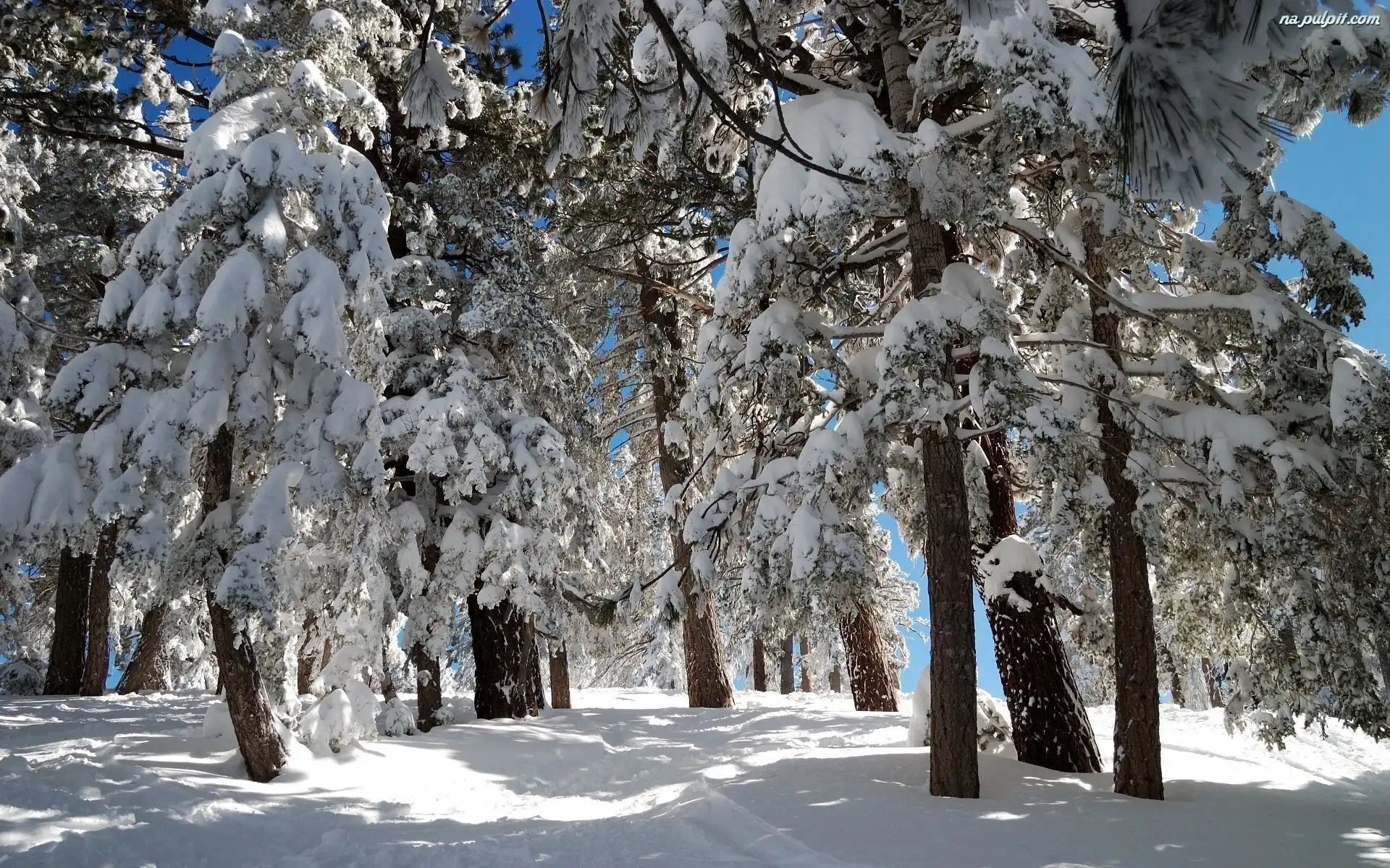 Iglaki, Ośnieżone, Zima, Drzewa Na Pulpit