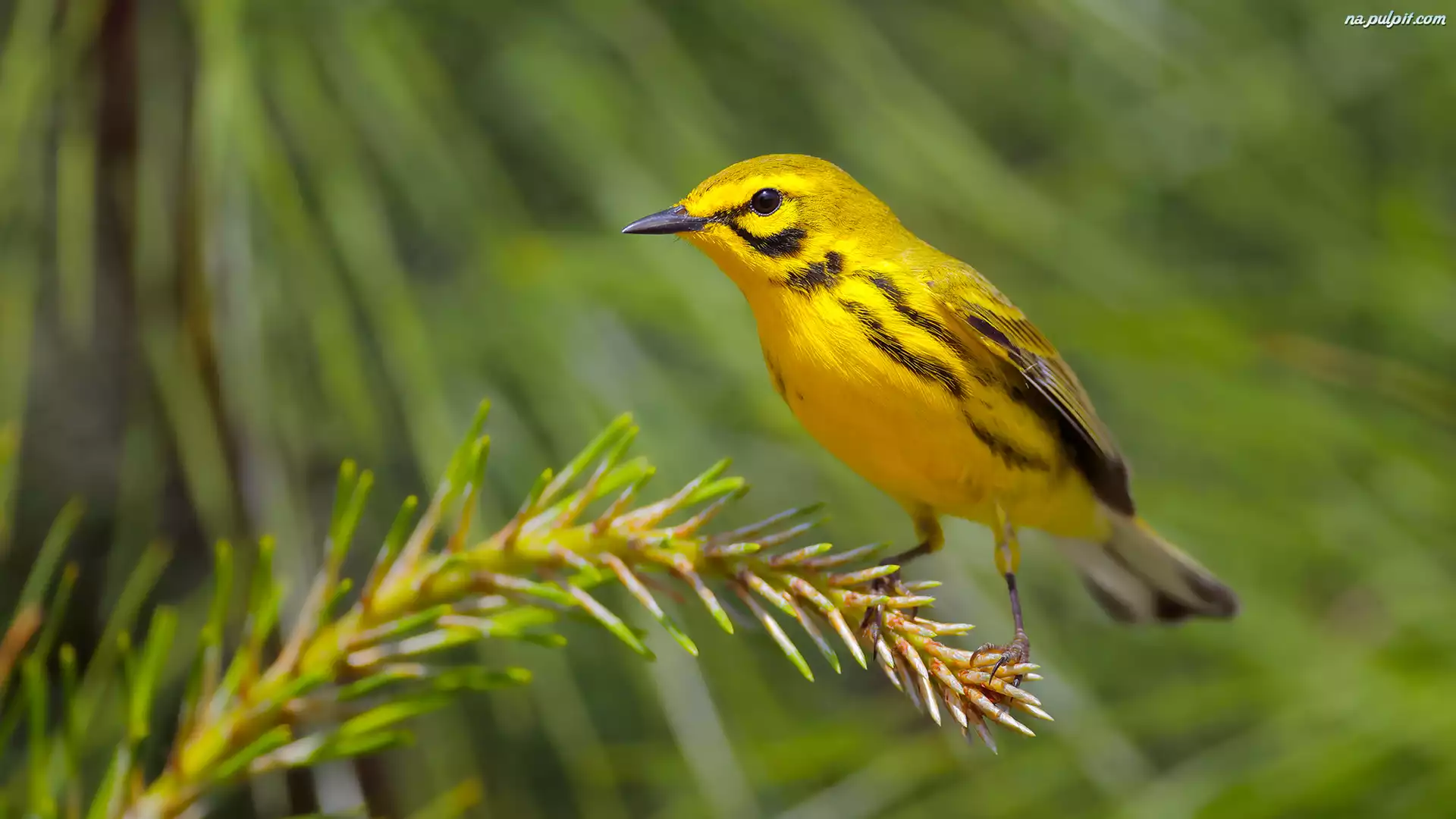 Gałązka, Żółty, Ptak, Iglasta, Lasówka czarnowąsa Na Pulpit