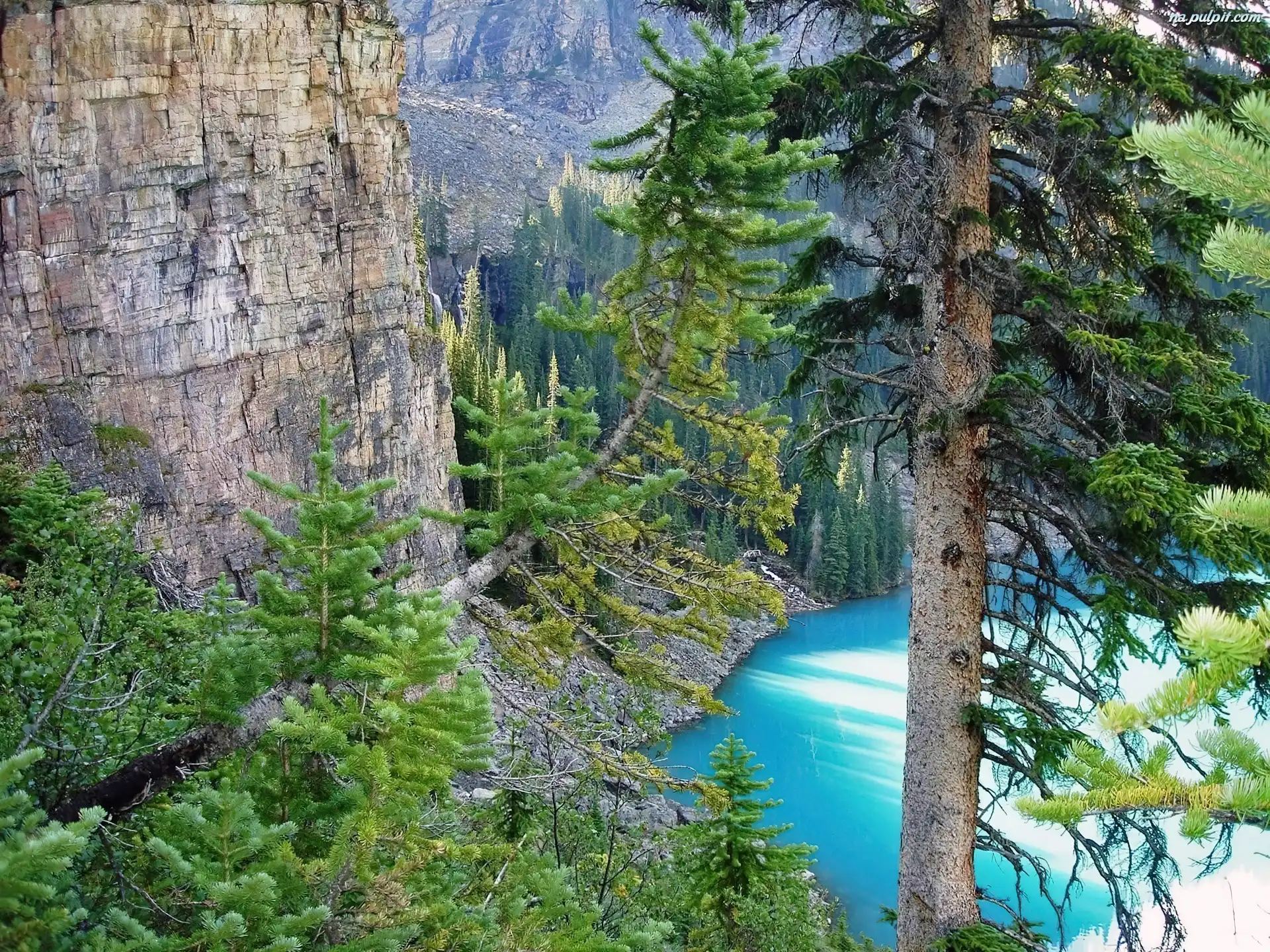 Iglaste, Skały, Jezioro, Drzewa Na Pulpit