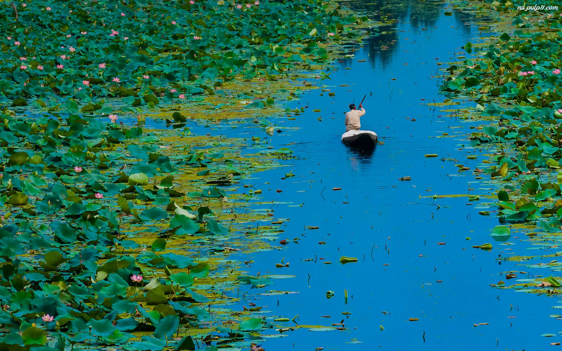 Łódka, Jezioro Dal, Indie, Lotos Na Pulpit