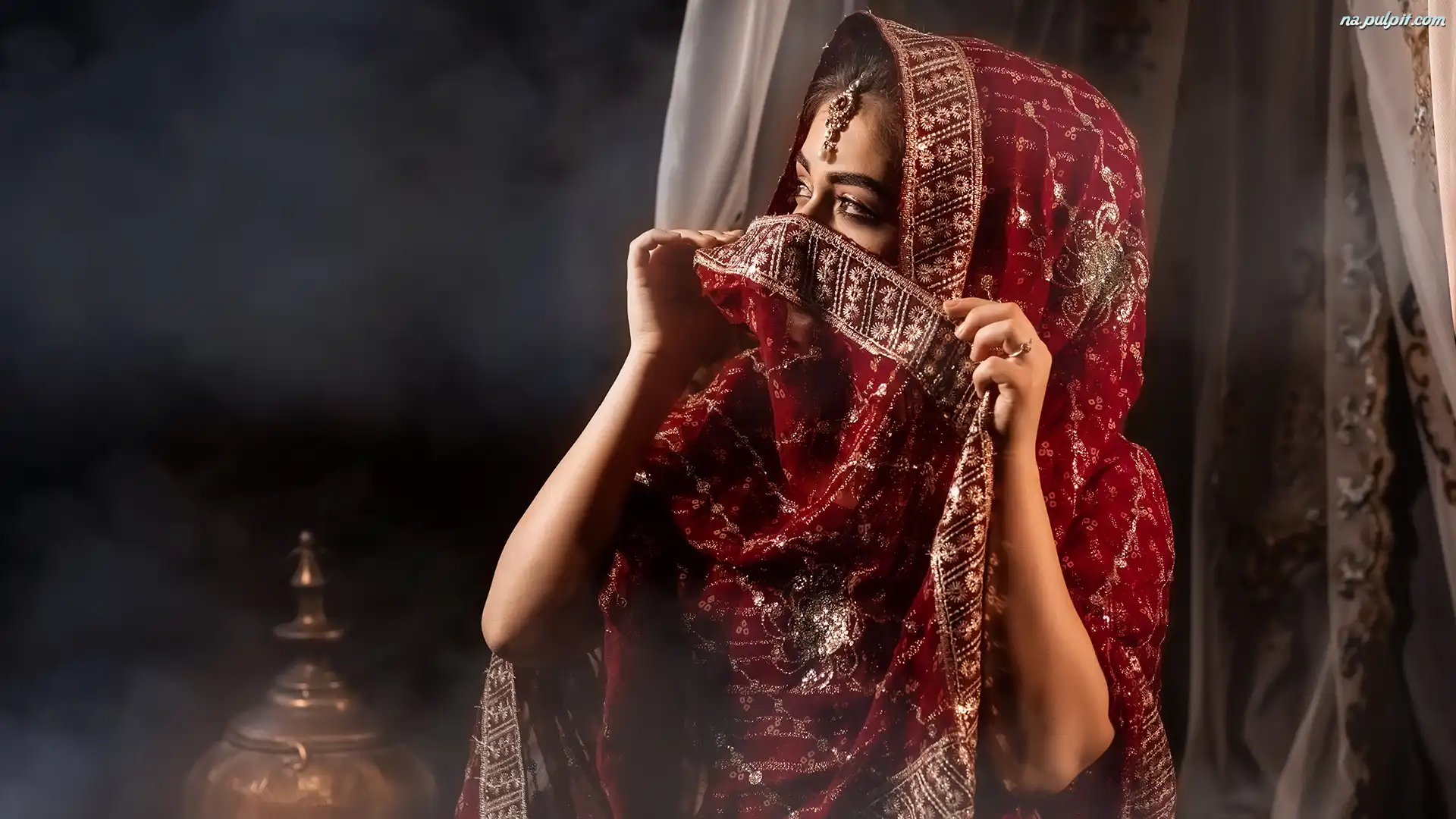 Indyjski, Strój, Kobieta, Orientalny Na Pulpit