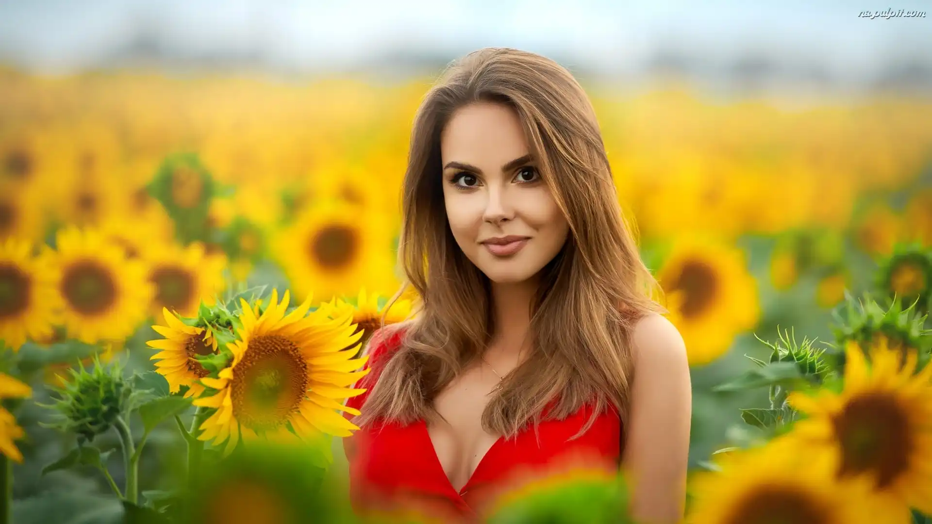 Słoneczniki, Ira Mitichkina, Uśmiech, Szatynka, Modelka, Kobieta, Spojrzenie Na Pulpit