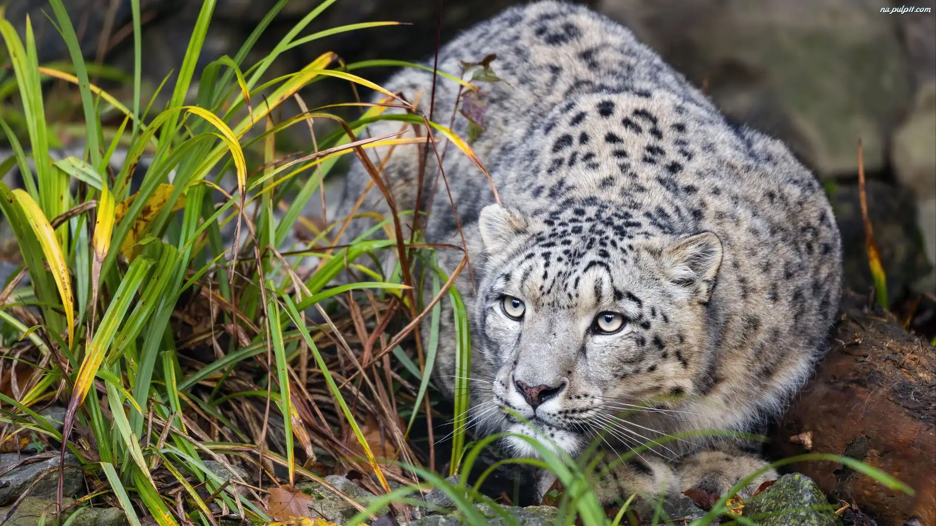 Irbis, Przyczajony, Trawa Na Pulpit
