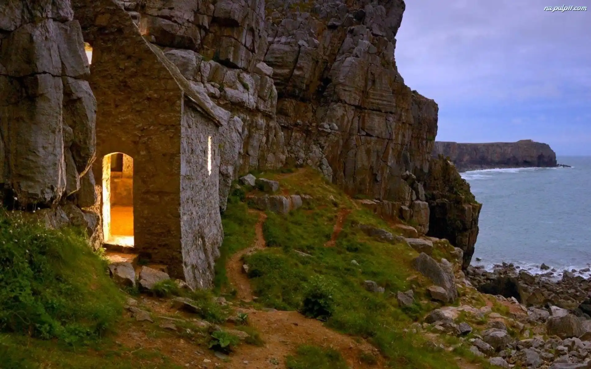 Irlandia, Skały, Kaplica, Morze