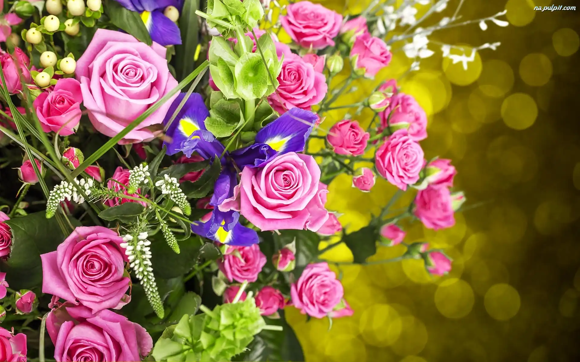 Irysy, Bukiet, Kwiaty, Róże Na Pulpit