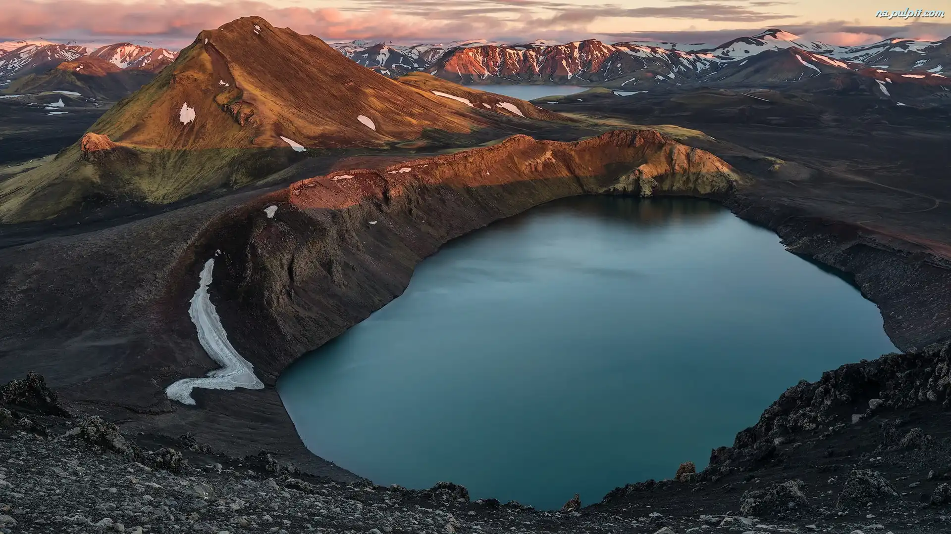 Islandia, Góry, Jezioro Hnausapollur Na Pulpit