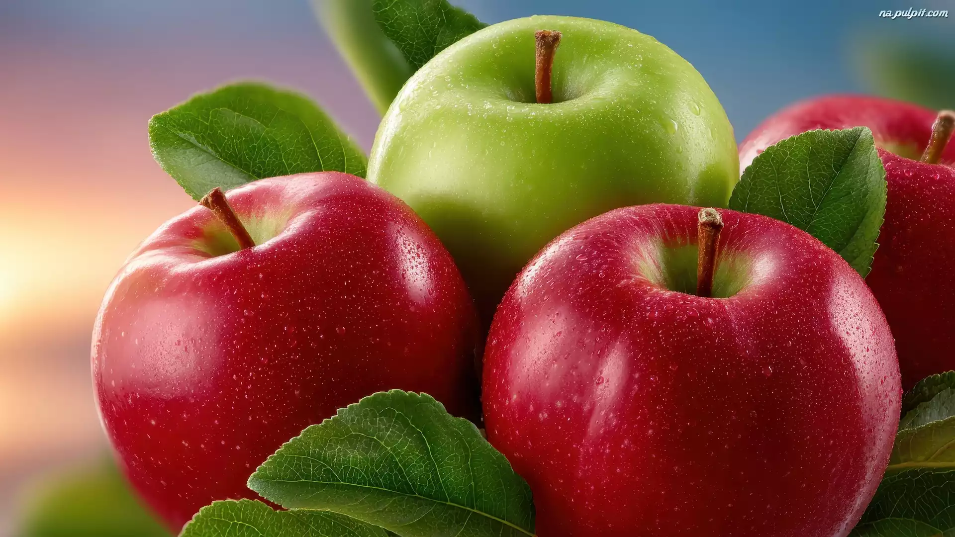 Liście, Jabłka, Czerwone, Grafika, Zielone Na Pulpit