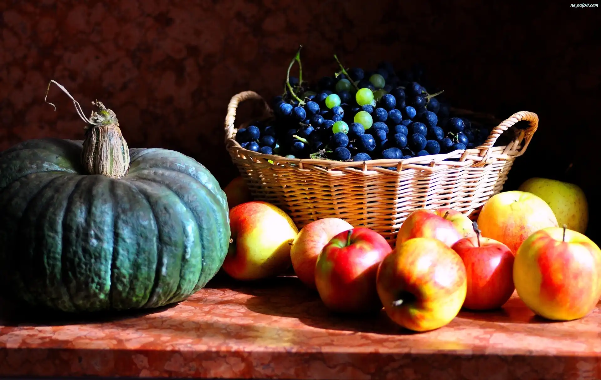 Jabłka, Kosz, Dynia, Winogrona Na Pulpit
