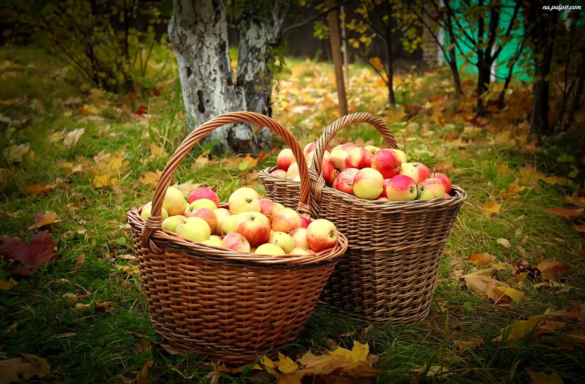 Jabłka, Liście, Drzewa, Jesień, Kosze Na Pulpit