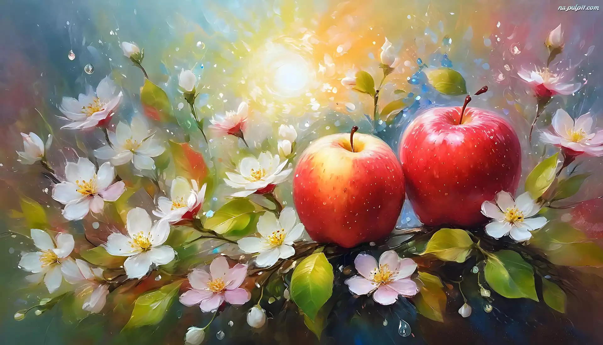 Dwa, Jabłka, Kwiaty, Grafika AI Na Pulpit