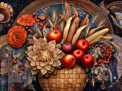 Kosz, Jabłka, Kwiaty, Grafika AI