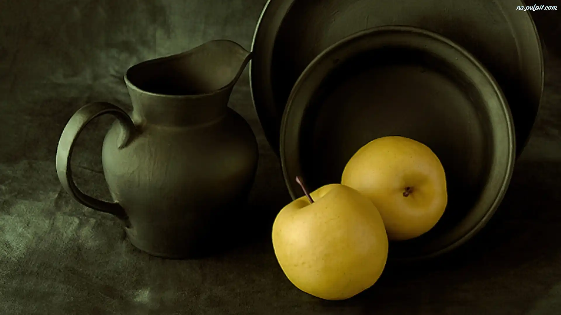 Jabłka, Naczynia, Metalowe, Żółte