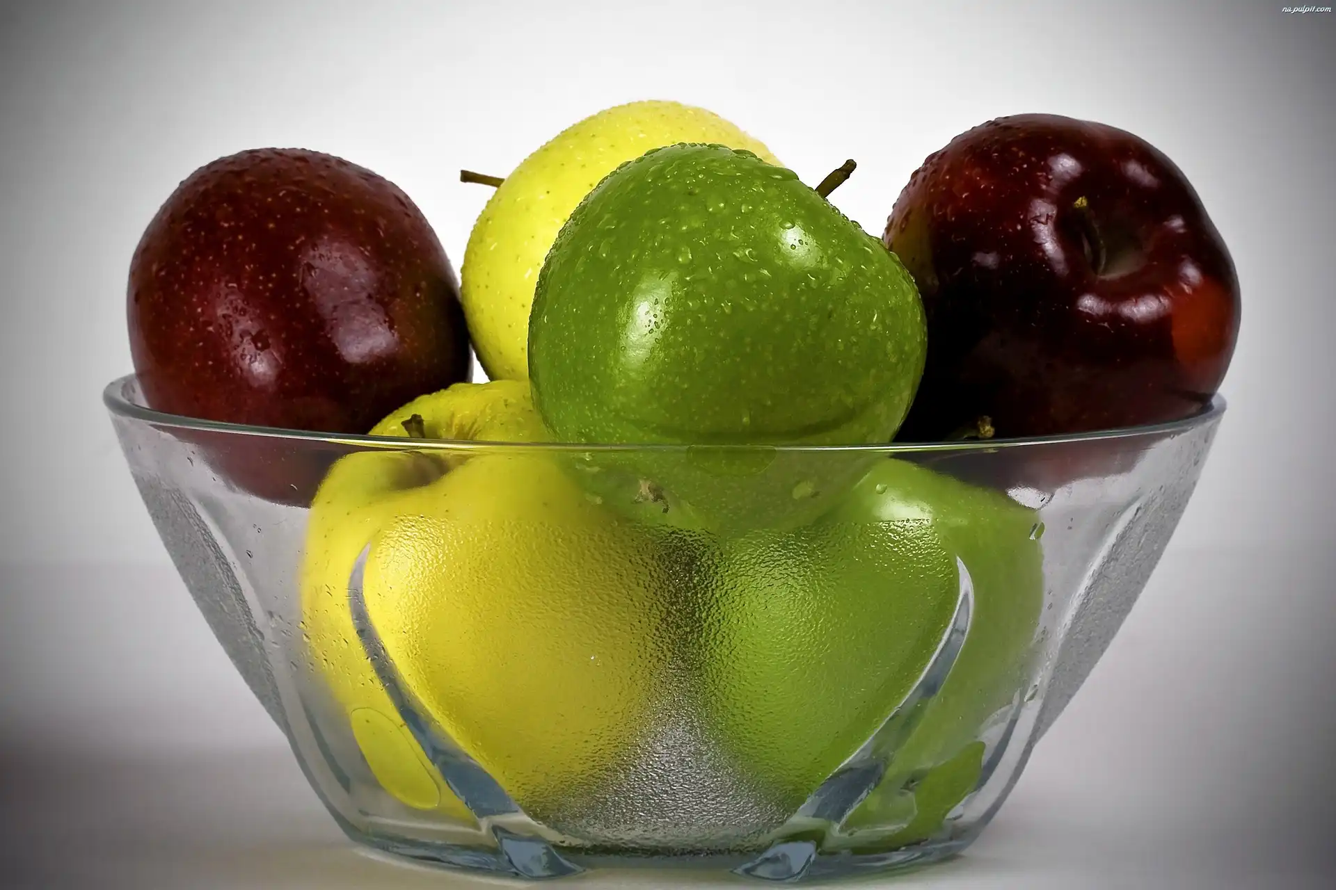 Jabłka, Miska, Szklana, Kolorowe Na Pulpit