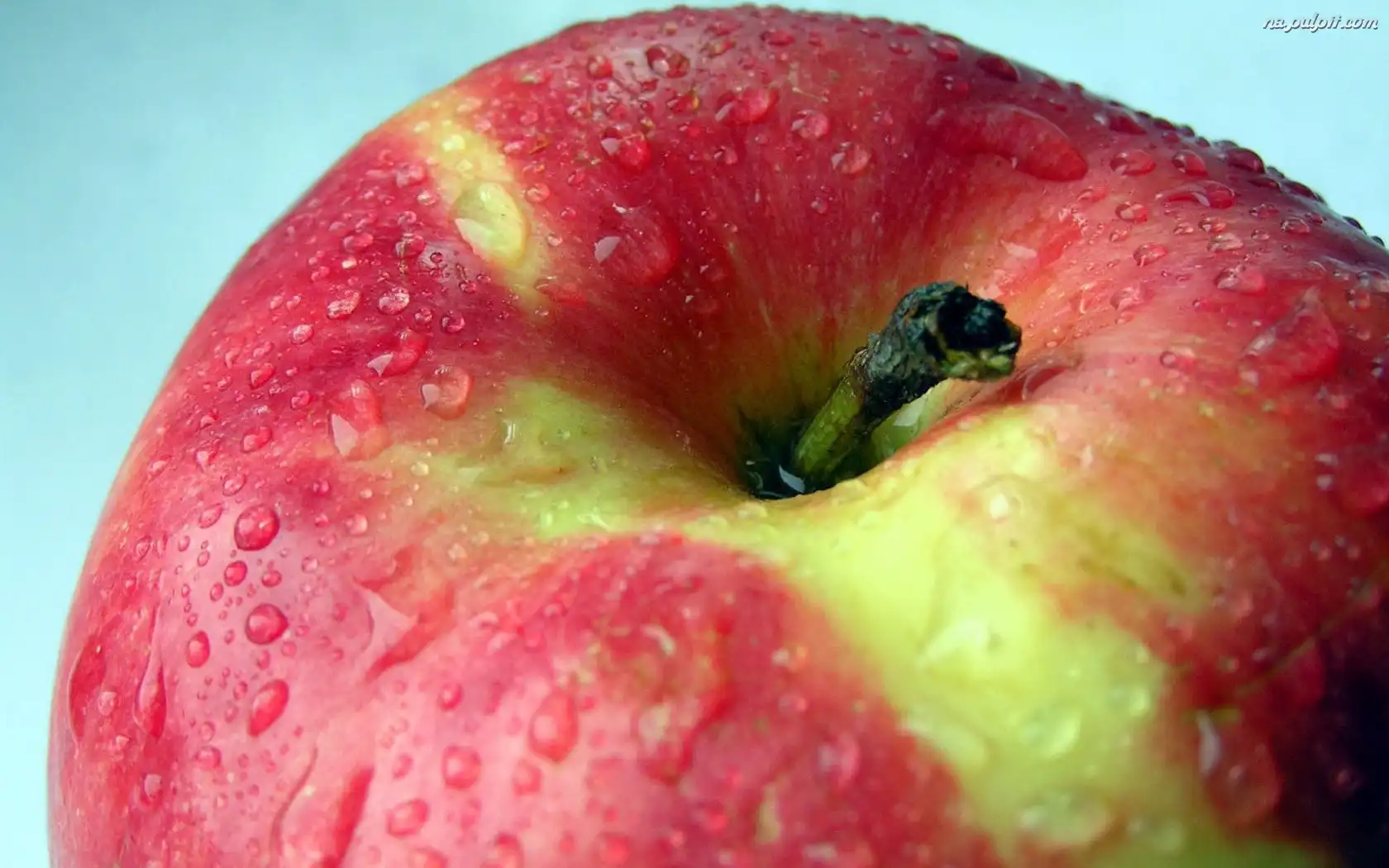 Jabłko, Wody, Zbliżenie, Ogonek, Czerwone, Krople Na Pulpit