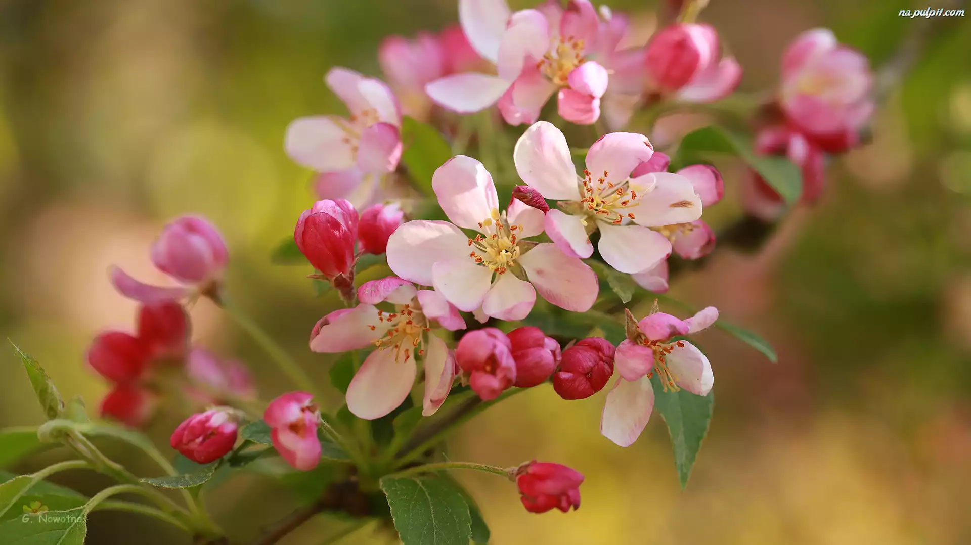 Gałązka, Różowe, Kwiaty, Jabłoń, Drzewo owocowe Na Pulpit