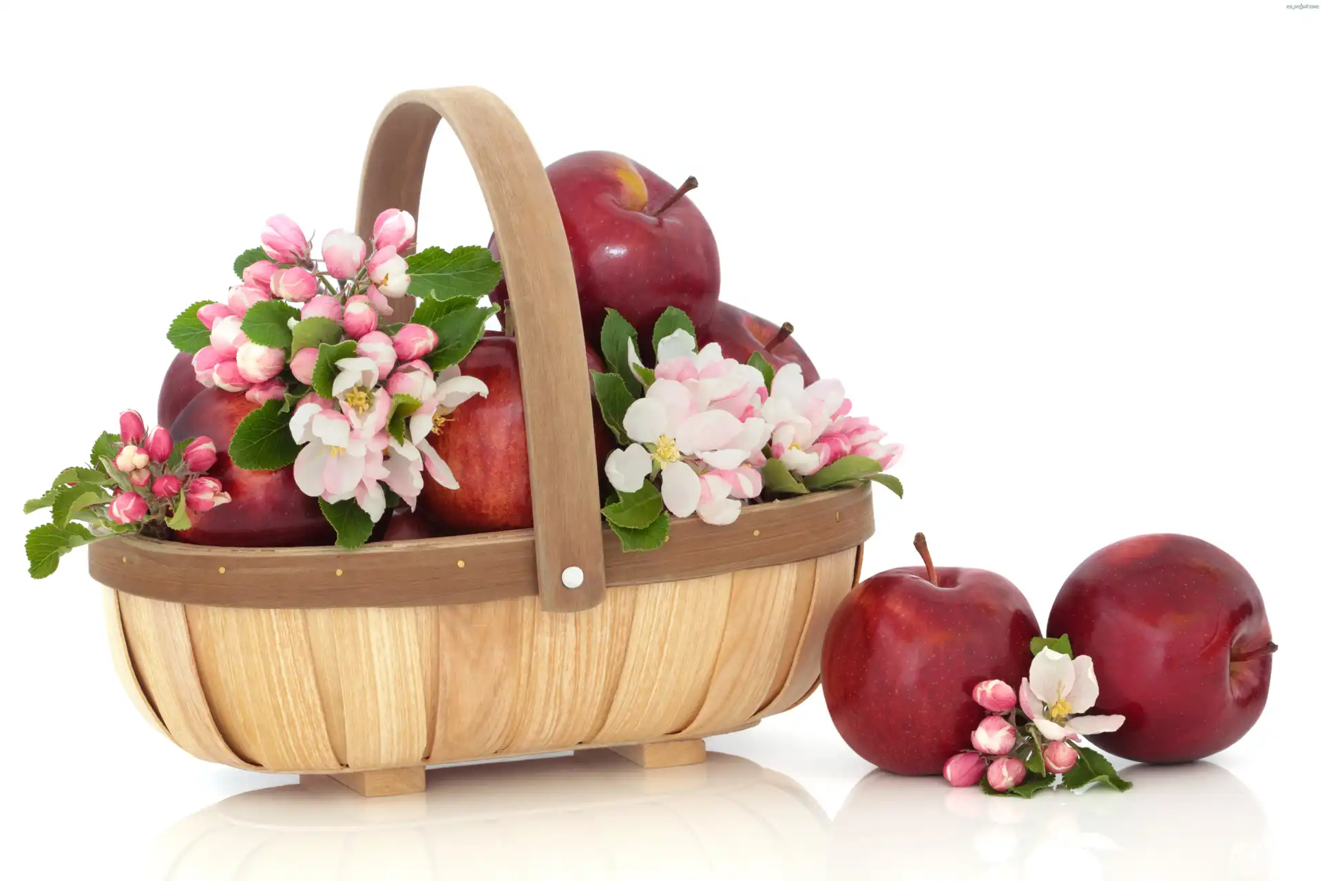 Jabłoni, Jabłek, Kosz, Kwiaty