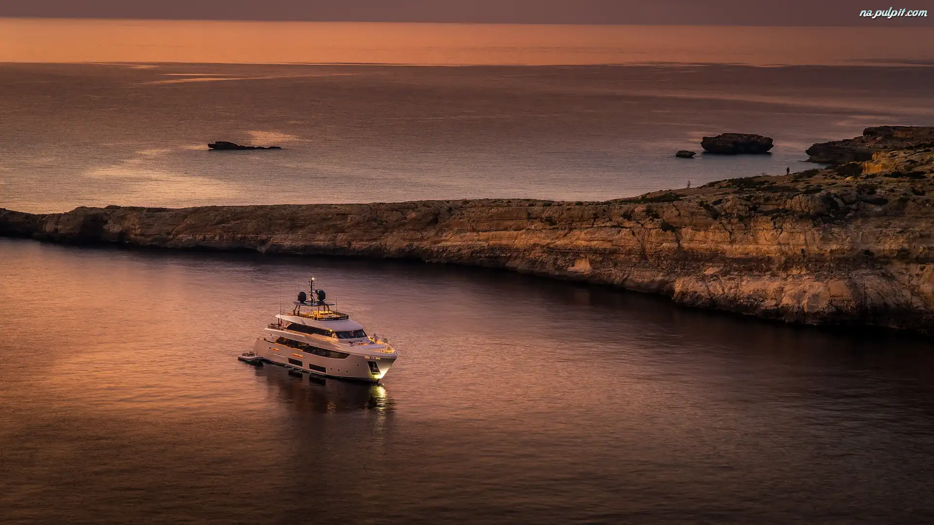 Malta, Dwejra Bay, Wyspa Gozo, Morze, Skały, Zatoka, Jacht Na Pulpit