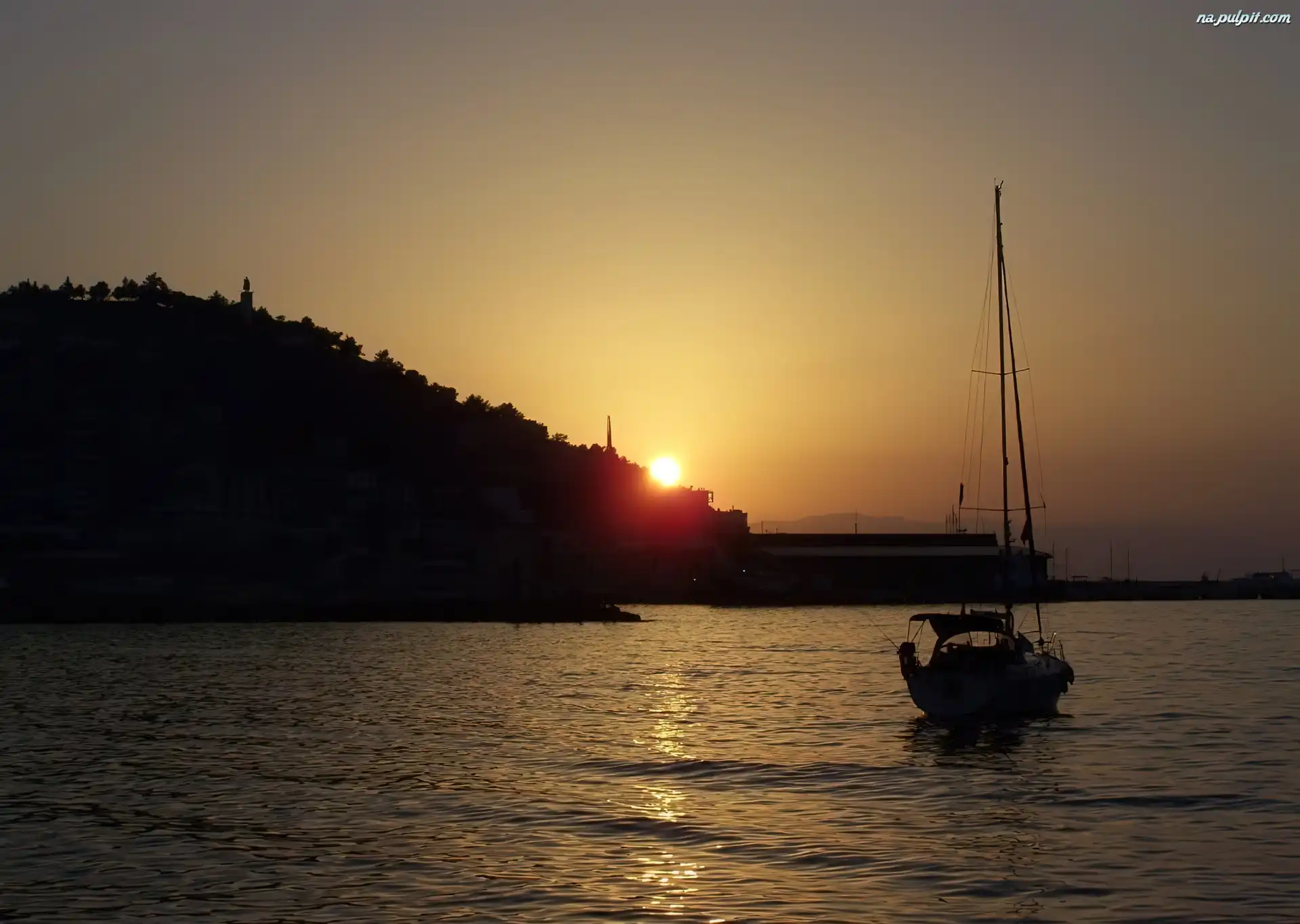 Jacht, Zachód, Morze, Słońca Na Pulpit