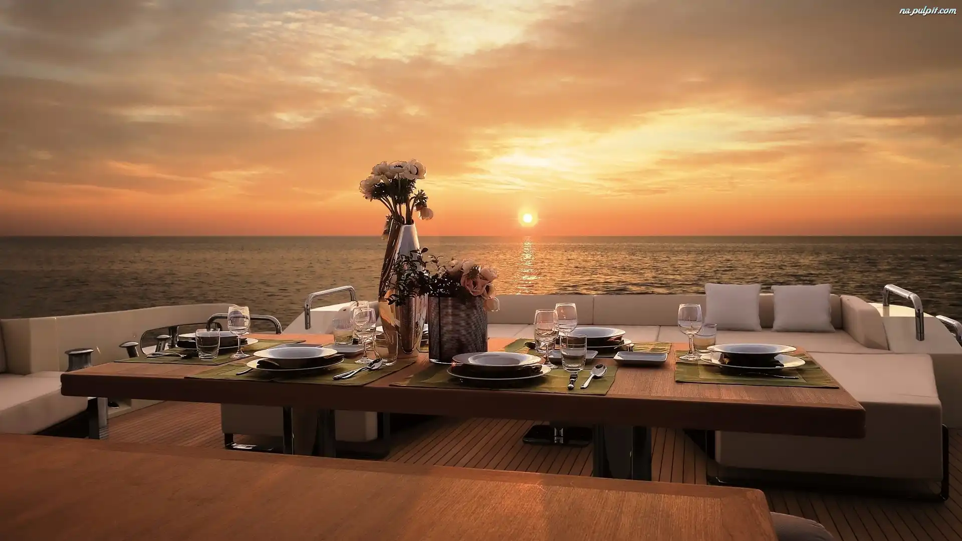 Jacht, Słońca, Zachód, Morze, Stolik Na Pulpit