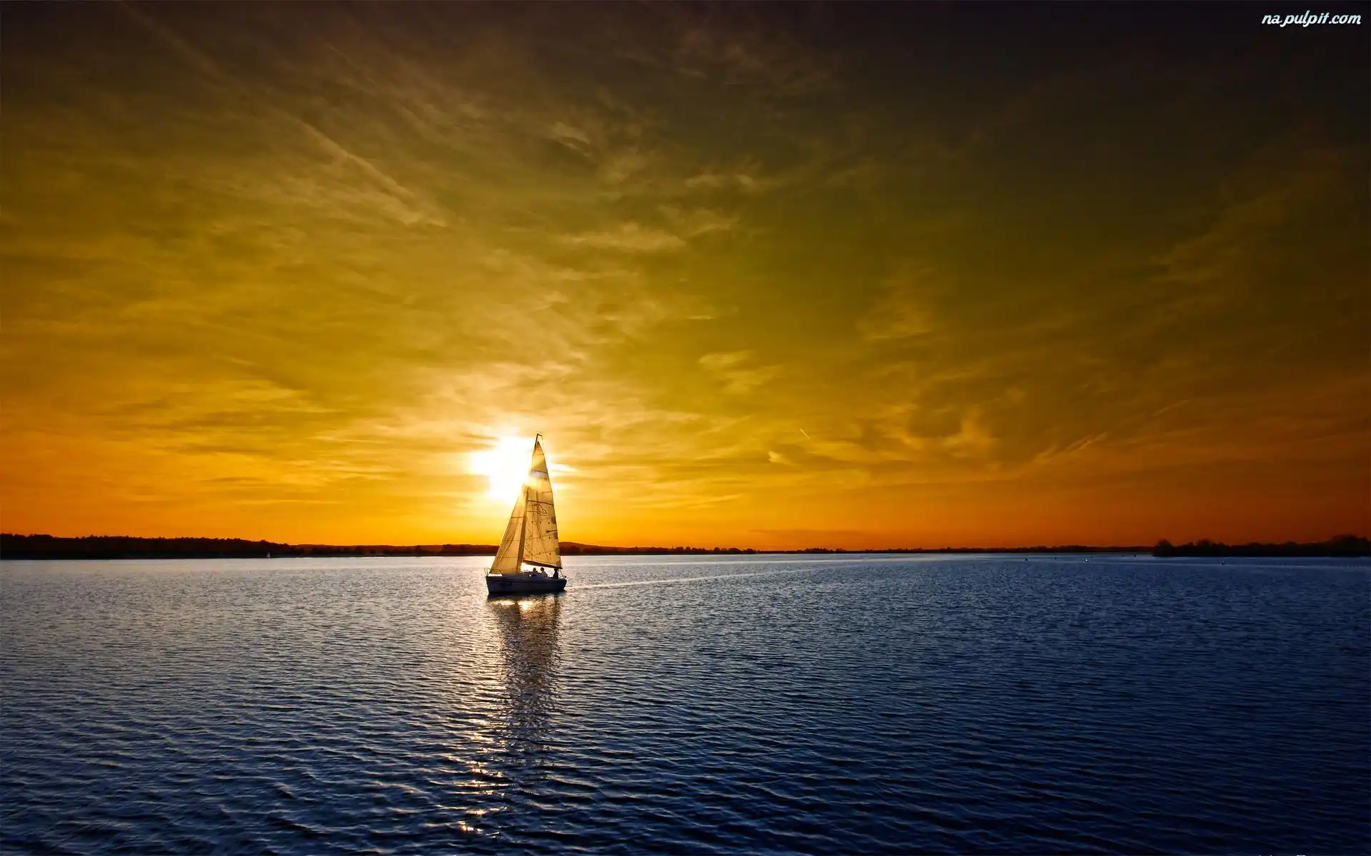 Jacht, Zachód, Słońce, Woda Na Pulpit