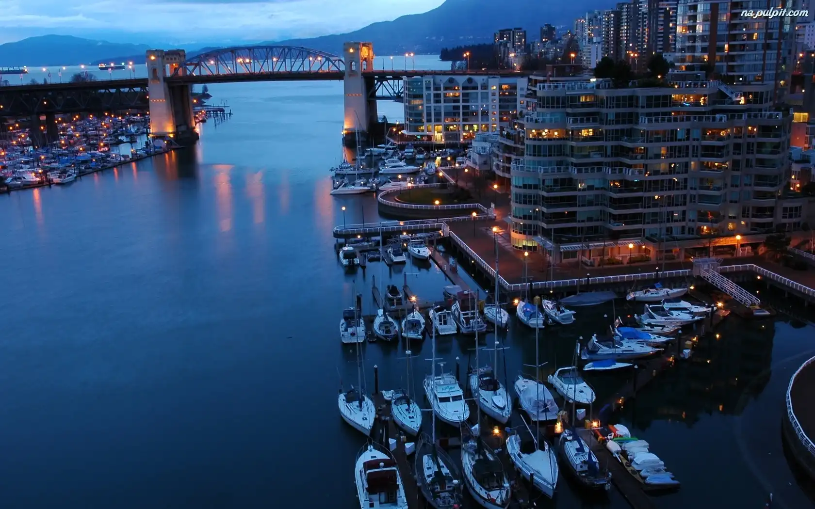 Jachty, Noc, Miasto, Oświetlone, Zatoka Na Pulpit