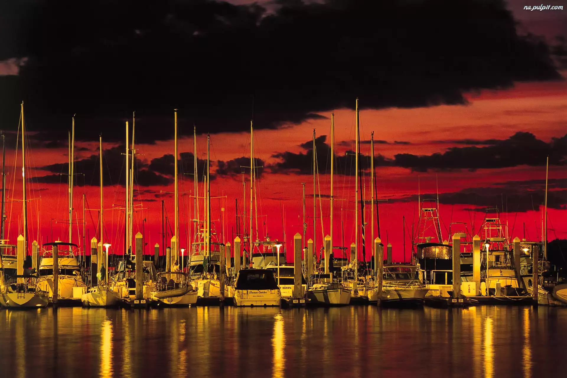 Jachty, Czerwień, Złoto, Niebo, Port, Chmury Na Pulpit