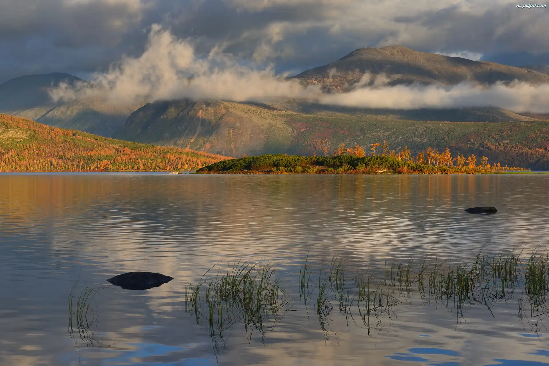 Rosja, Jezioro Jack London, Obwód magadański, Mgła, Góry Kołymskie, Jesień, Kołyma Na Pulpit