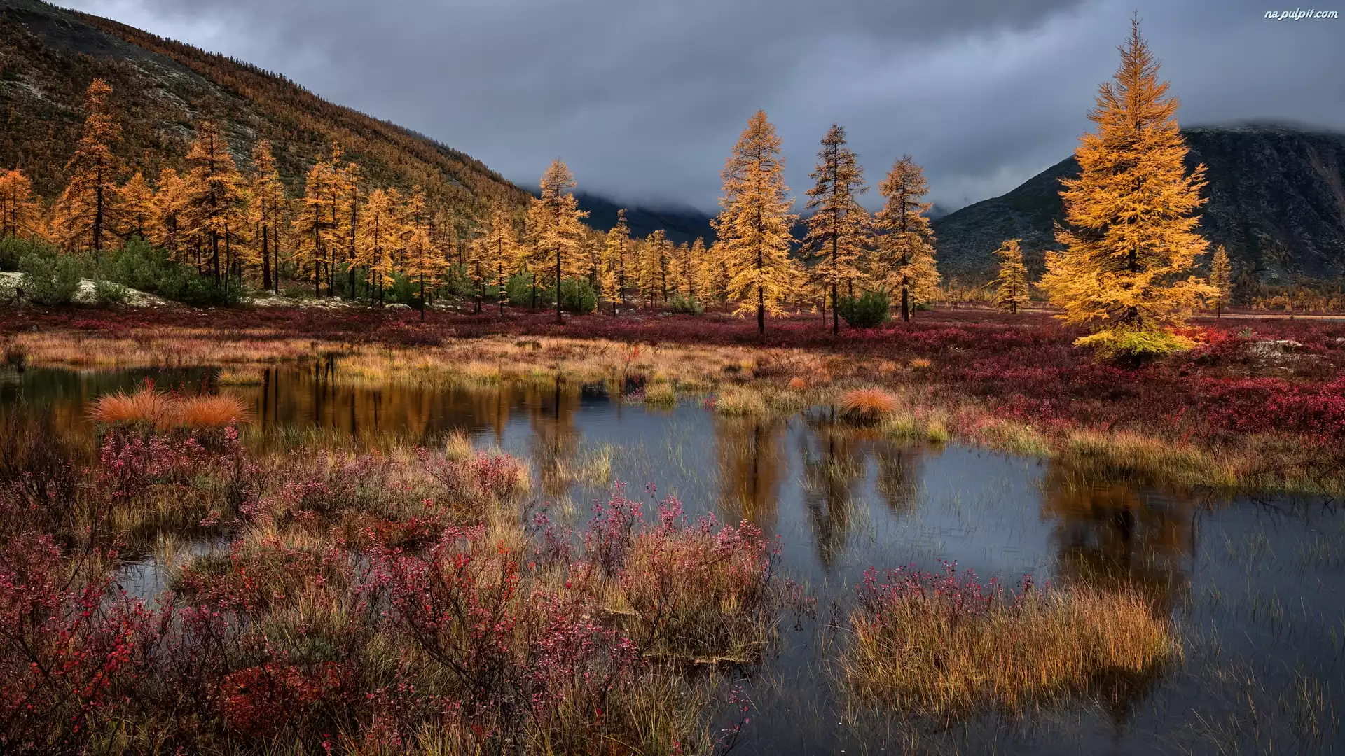 Jacka Londona, Góry, Jesień, Rosja, Krzewy, Drzewa, Kołyma, Jezioro Na Pulpit