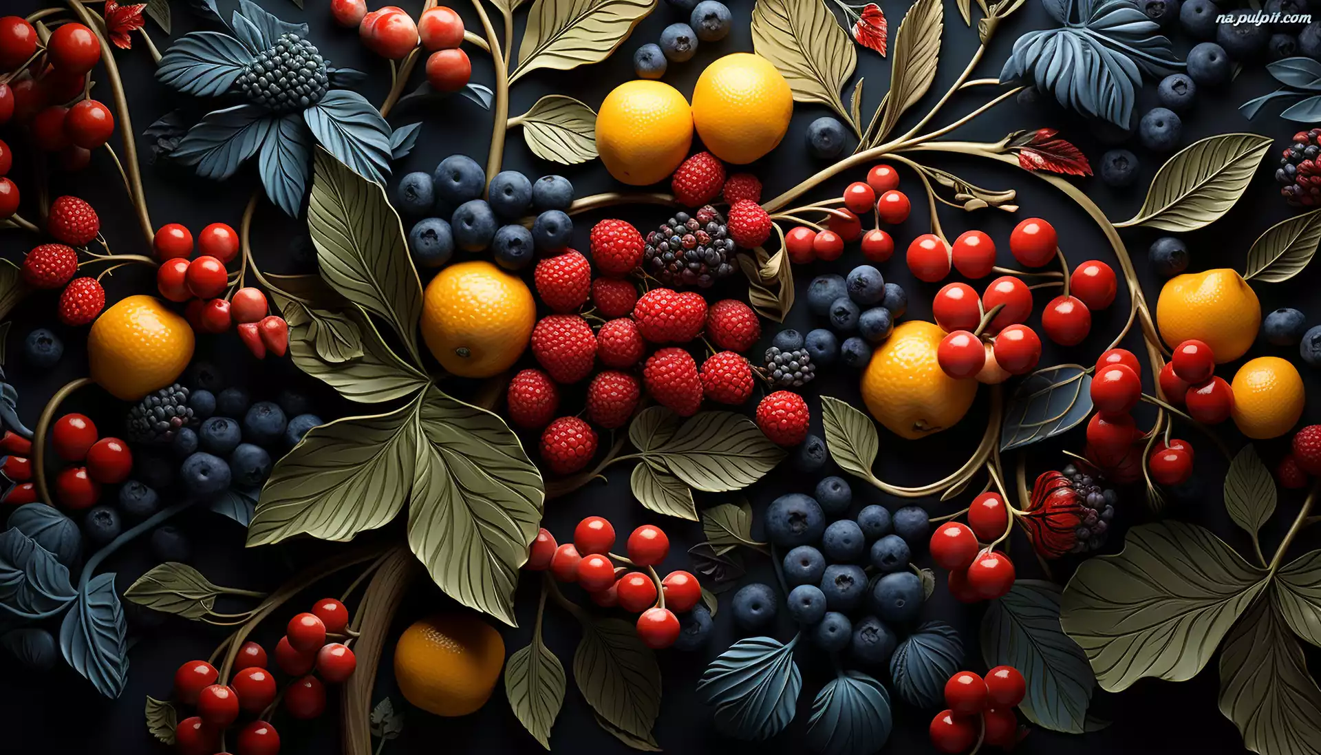 Mandarynki, AI, Liście, Jagody, Owoce, Maliny Na Pulpit