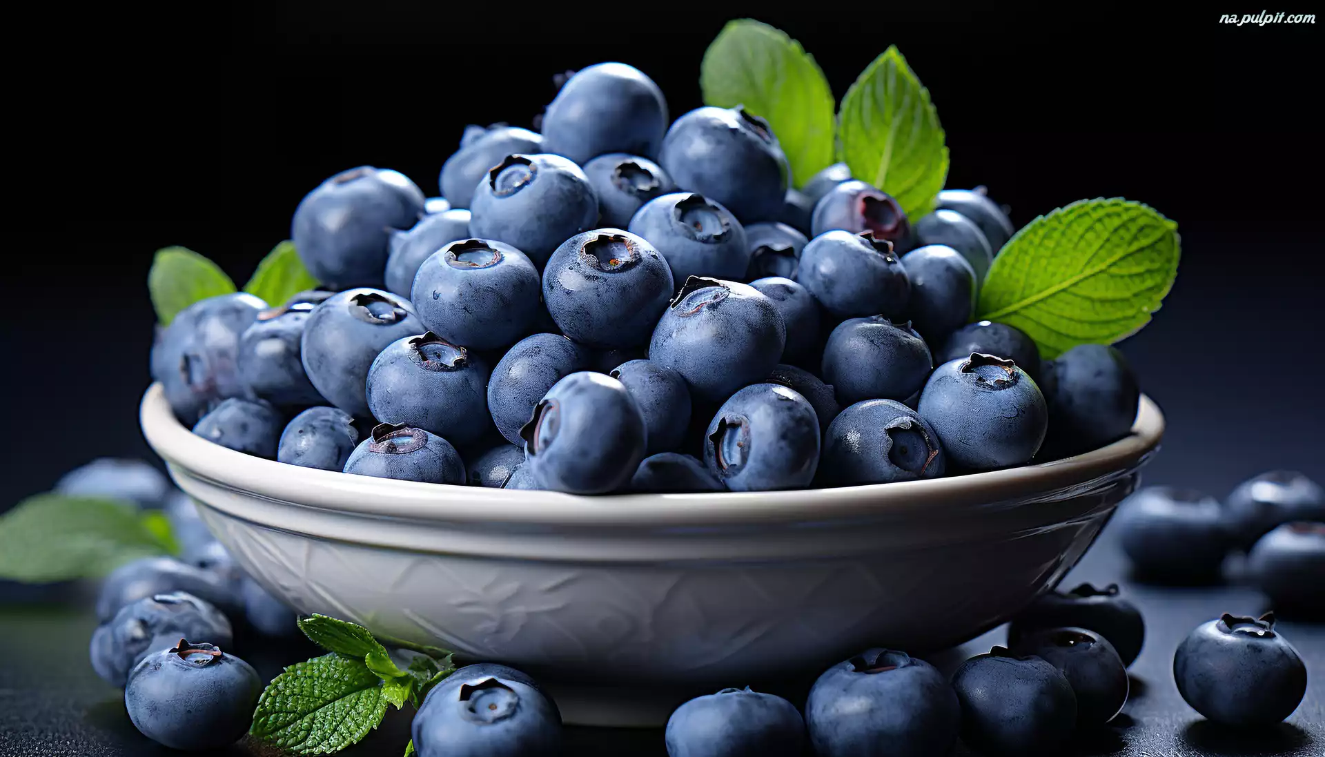 Listki, Owoce, Czarne, Jagody, Borówki, Miska Na Pulpit
