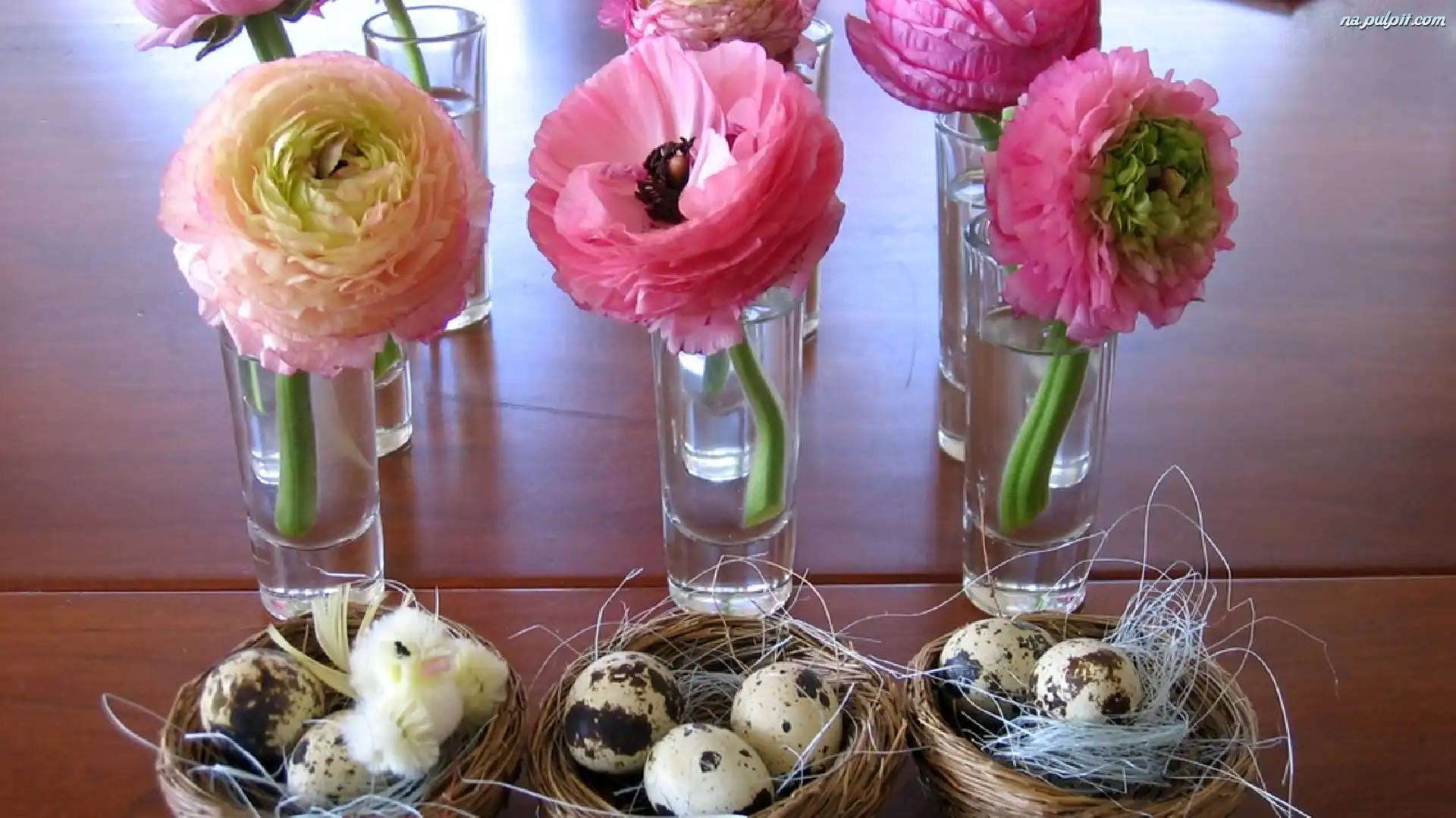 Jajeczka, Koszyczki, Kwiaty, Kolorowe, Gniazdka Na Pulpit