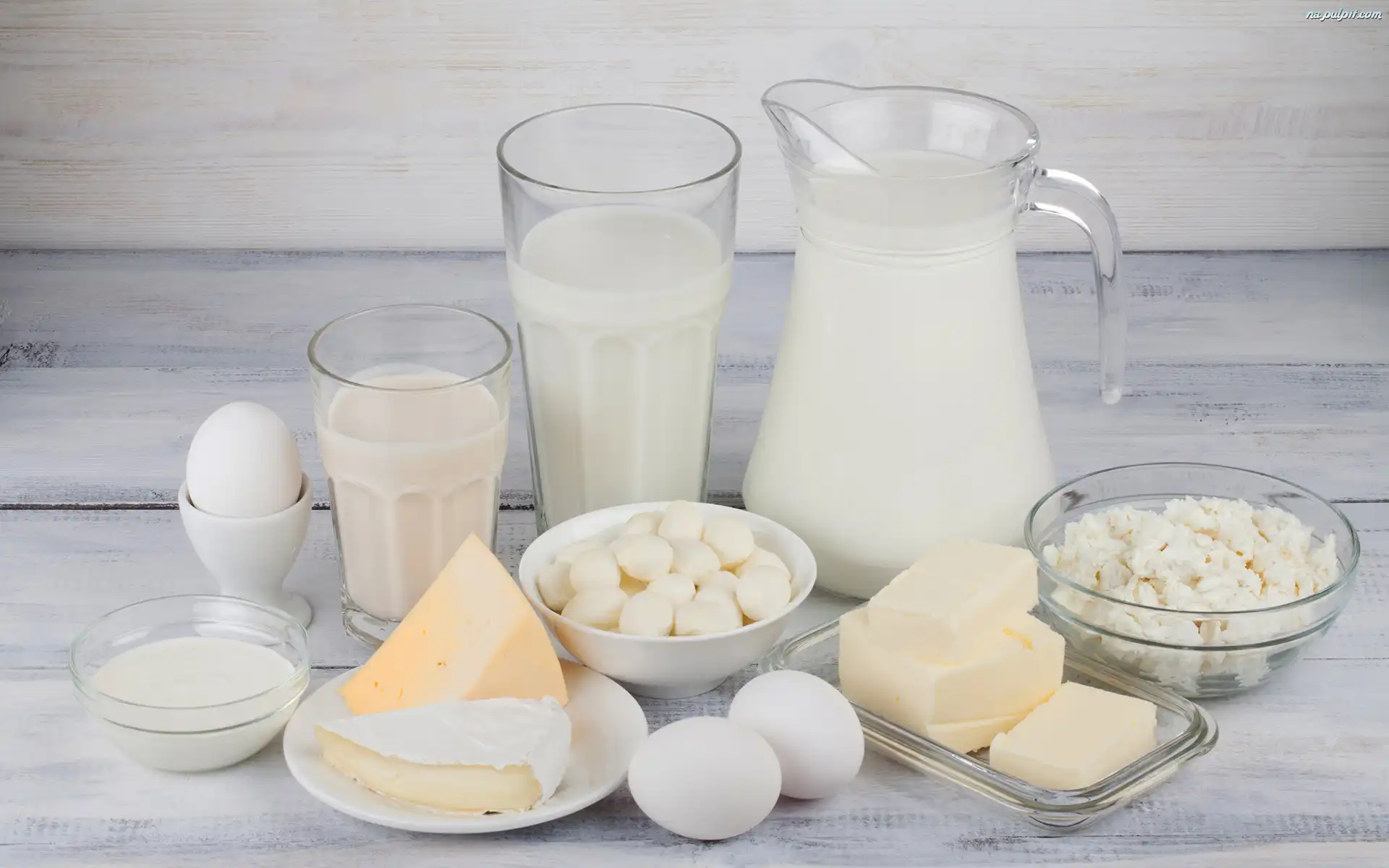 Mleko, Sery, Miseczki, Dzbanek, Masło, Jajka, Śmietana, Talerzyk, Deski, Kefir, Nabiał, Szklanki Na Pulpit |