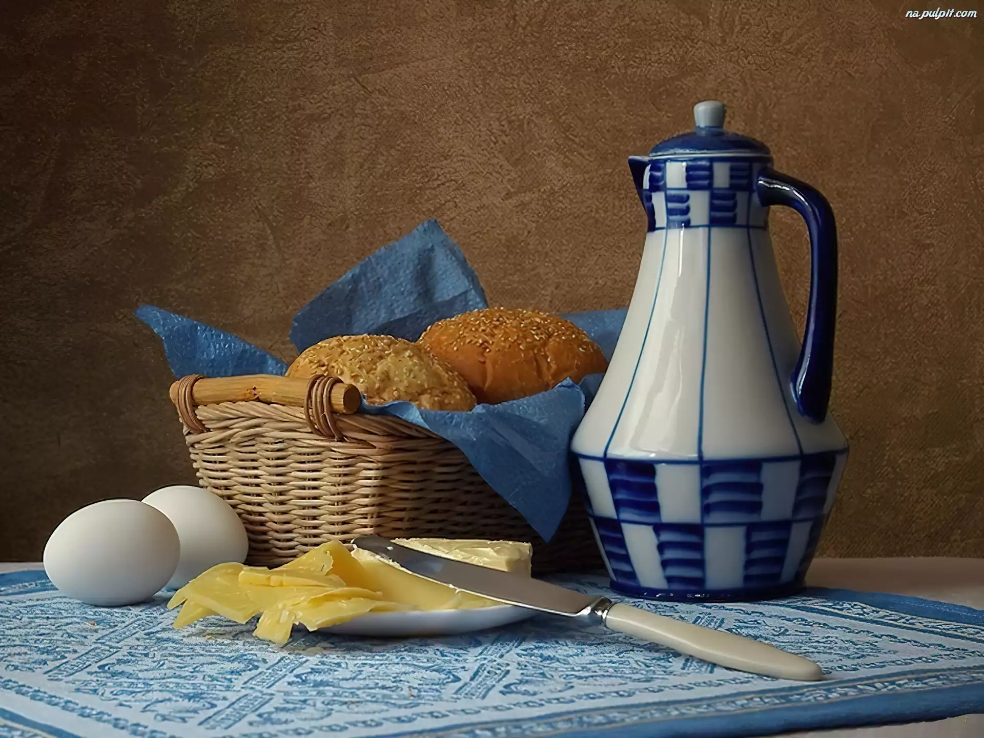 Śniadanie, Żółty, Ser, Jajka, Bułeczki Na Pulpit
