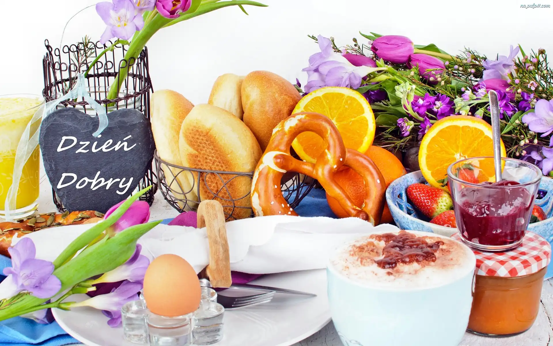 Śniadanie, Kawa, Jajko, Bułki, Kwiaty Na Pulpit