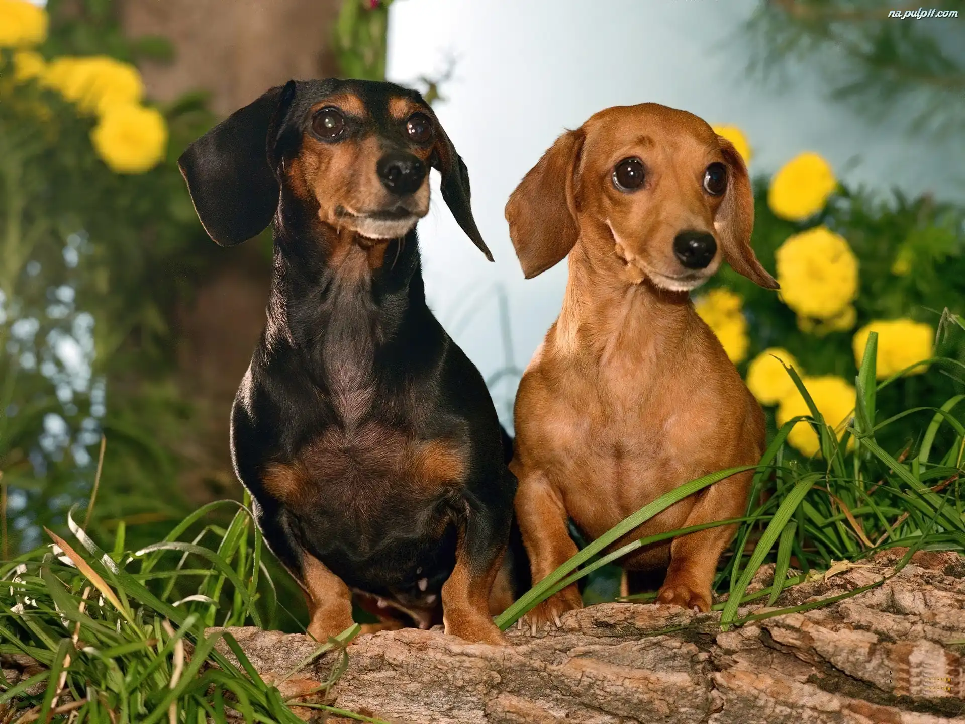 Jamniczki, Dwa, Trawa, Psy Na Pulpit