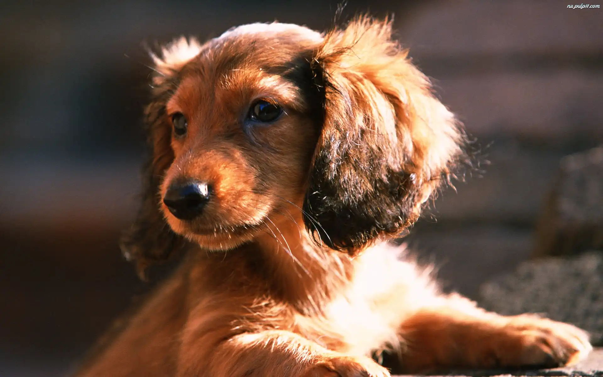 Jamnik, Brązowy, Mały, Szczeniaczek Na Pulpit