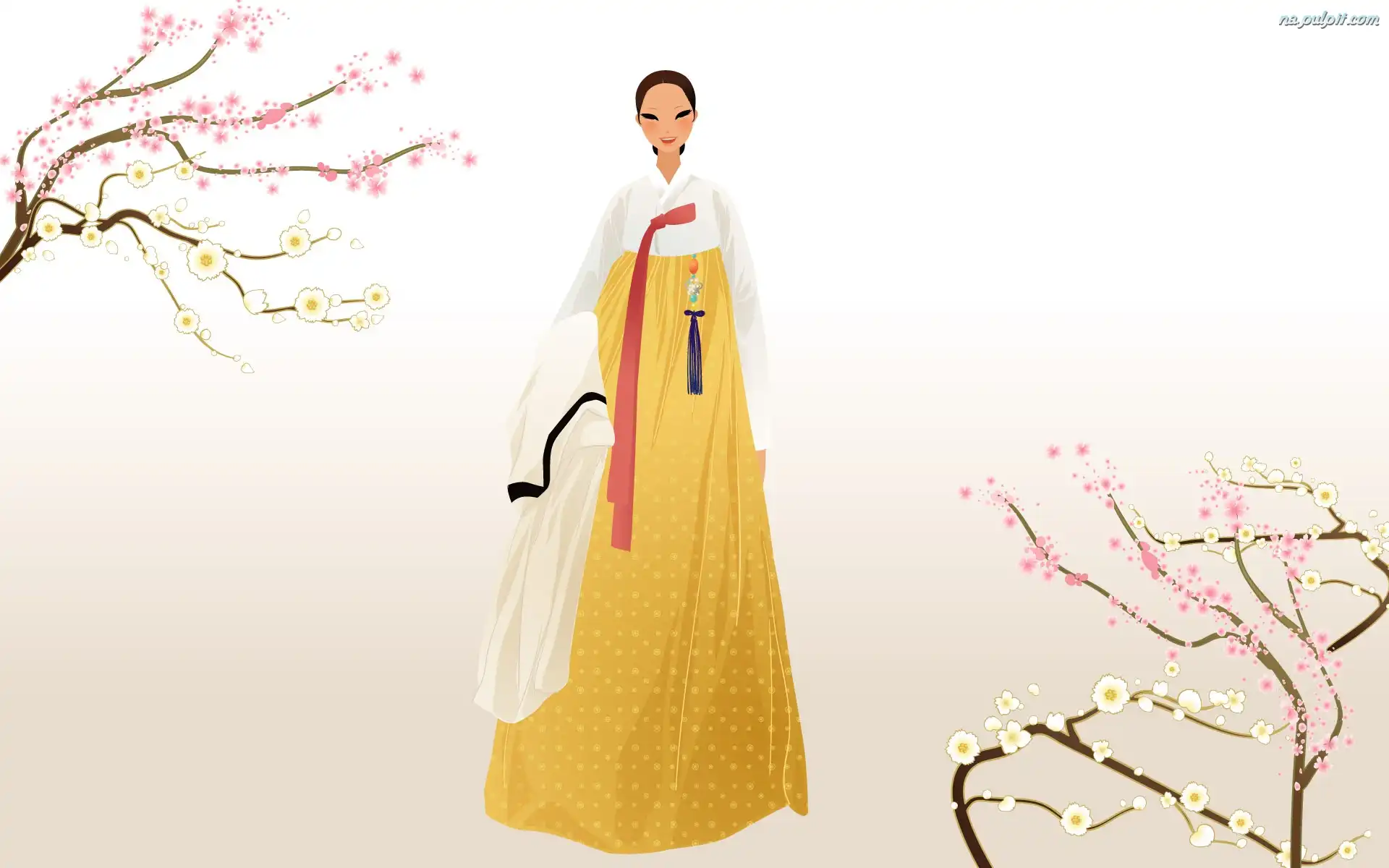 Kimono, Japonka, Gałązki Na Pulpit