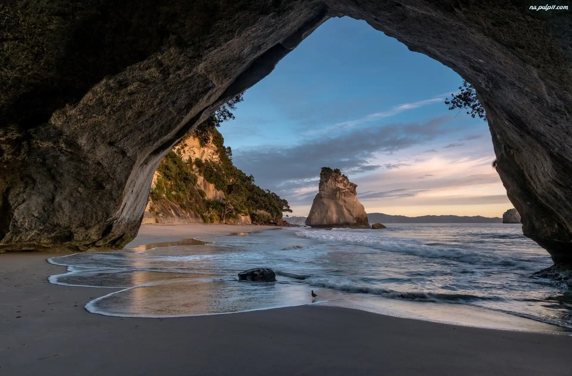 Jaskinia, Półwysep Coromandel, Region Waikato, Morze, Skały, Zatoka Cathedral Cove, Nowa Zelandia, Rezerwat Na Pulpit |