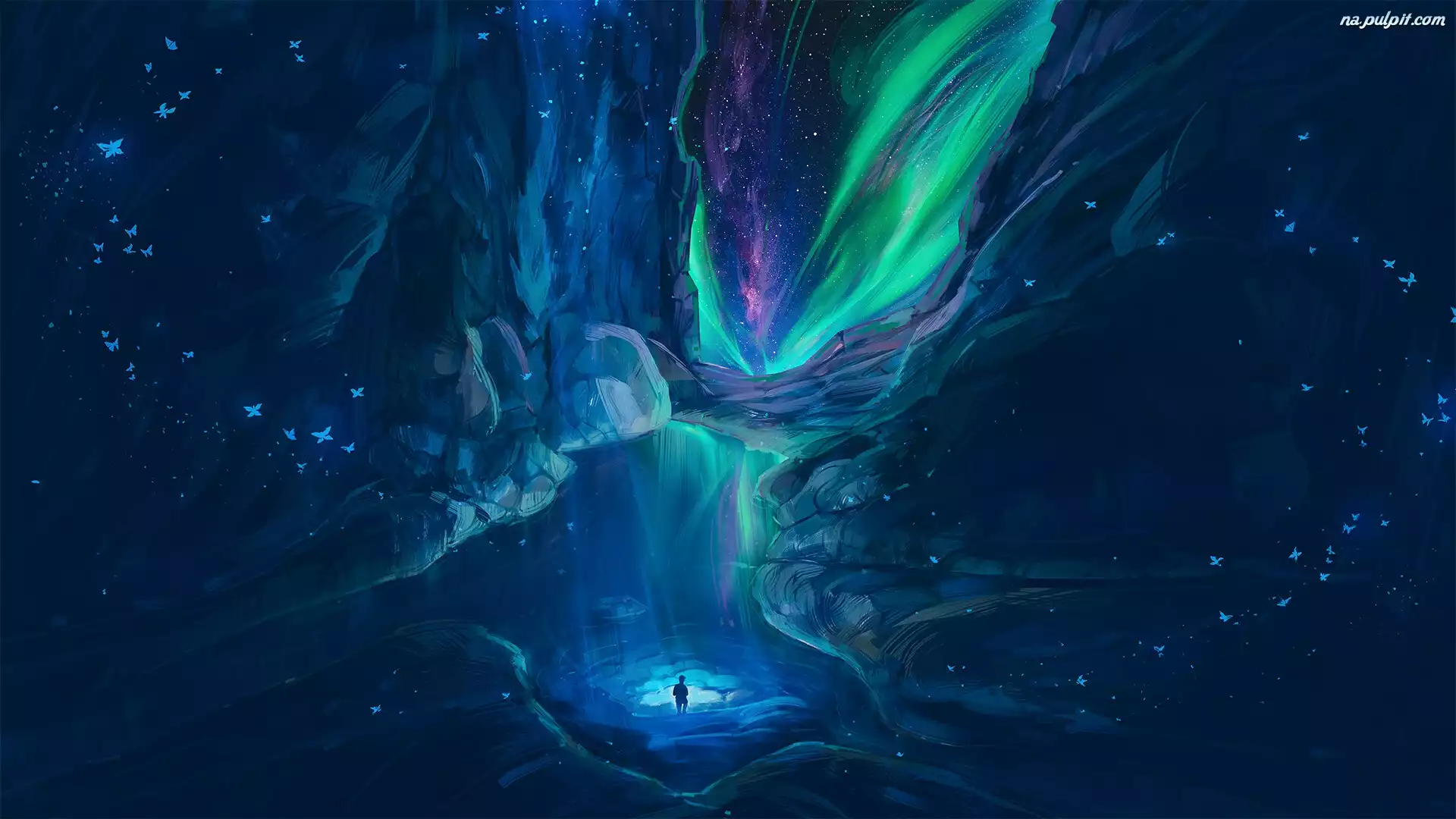 Grafika, Jaskinia, Zorza polarna, Człowiek Na Pulpit
