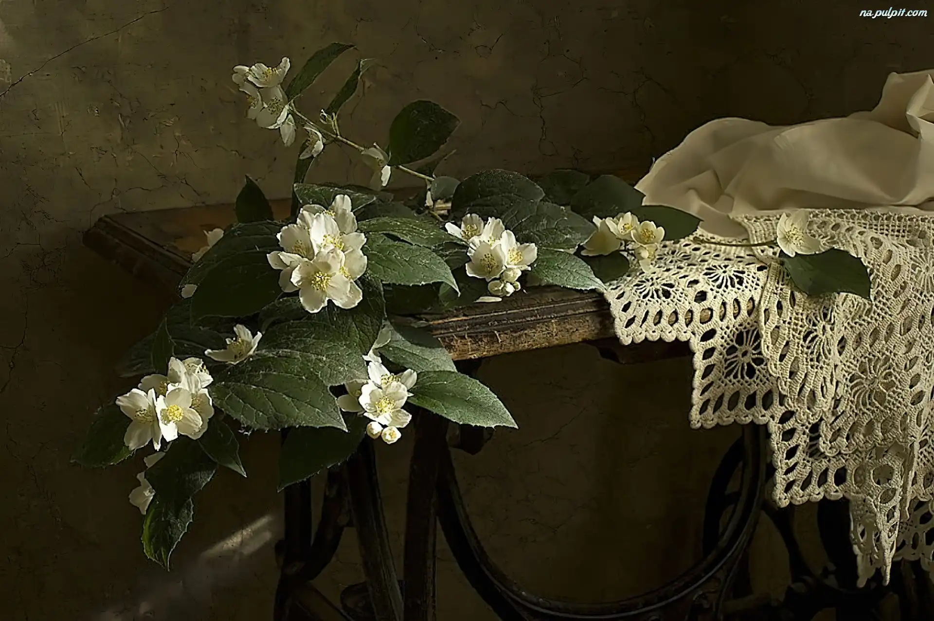 Serwetka, Jaśmin, Robiona, Stolik, Antyczny, Biały, Ręcznie
