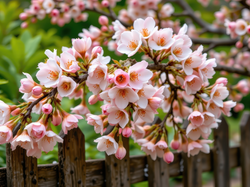 Drzewo owocowe, Gałązka, Jasnoróżowe, Płot, Kwiaty
