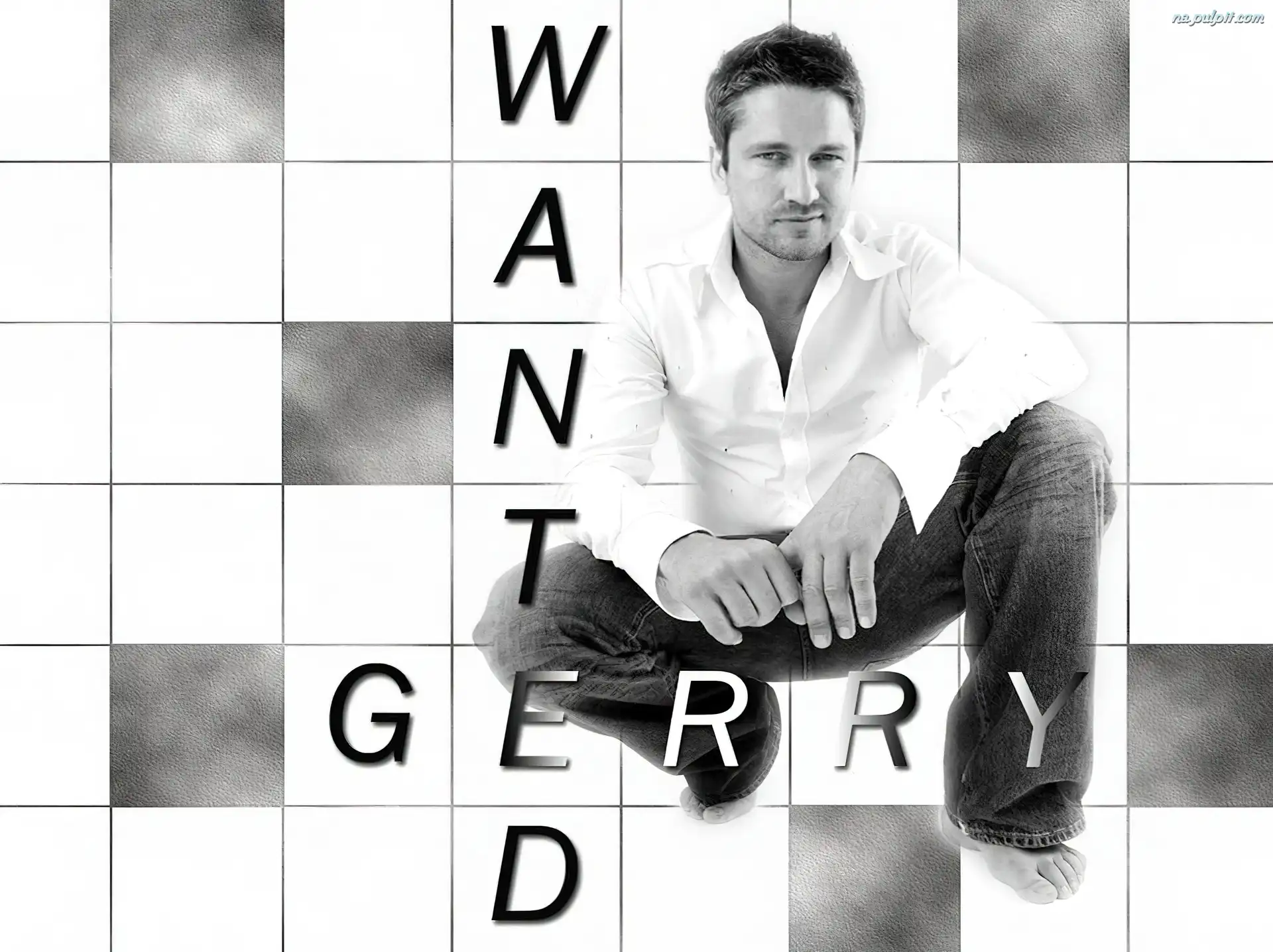 jeansy, Gerard Butler, biała koszula Na Pulpit
