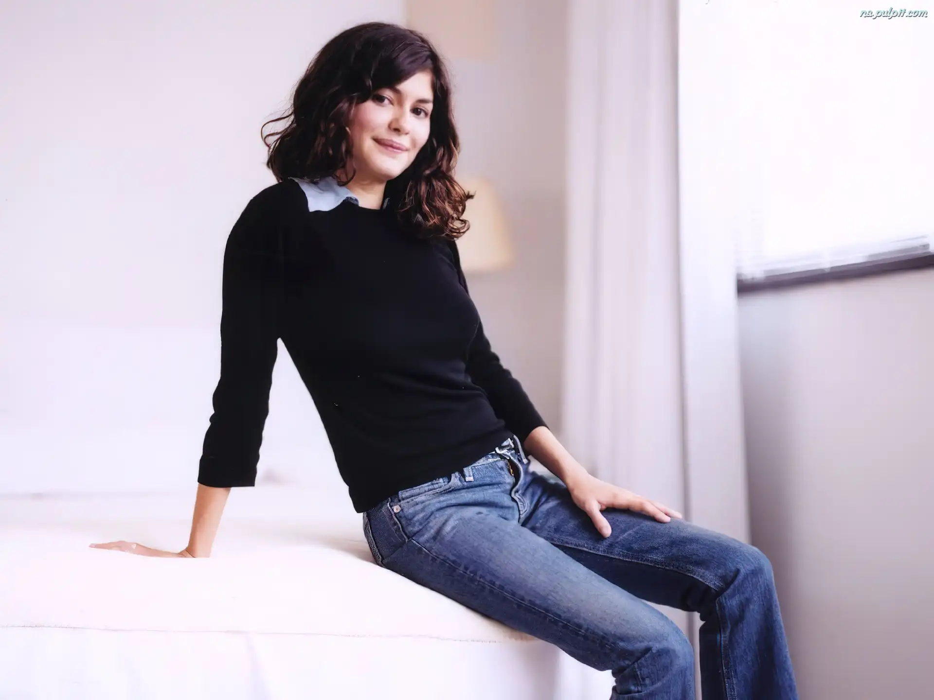 jeansy, Audrey Tautou, czarna bluzka Na Pulpit