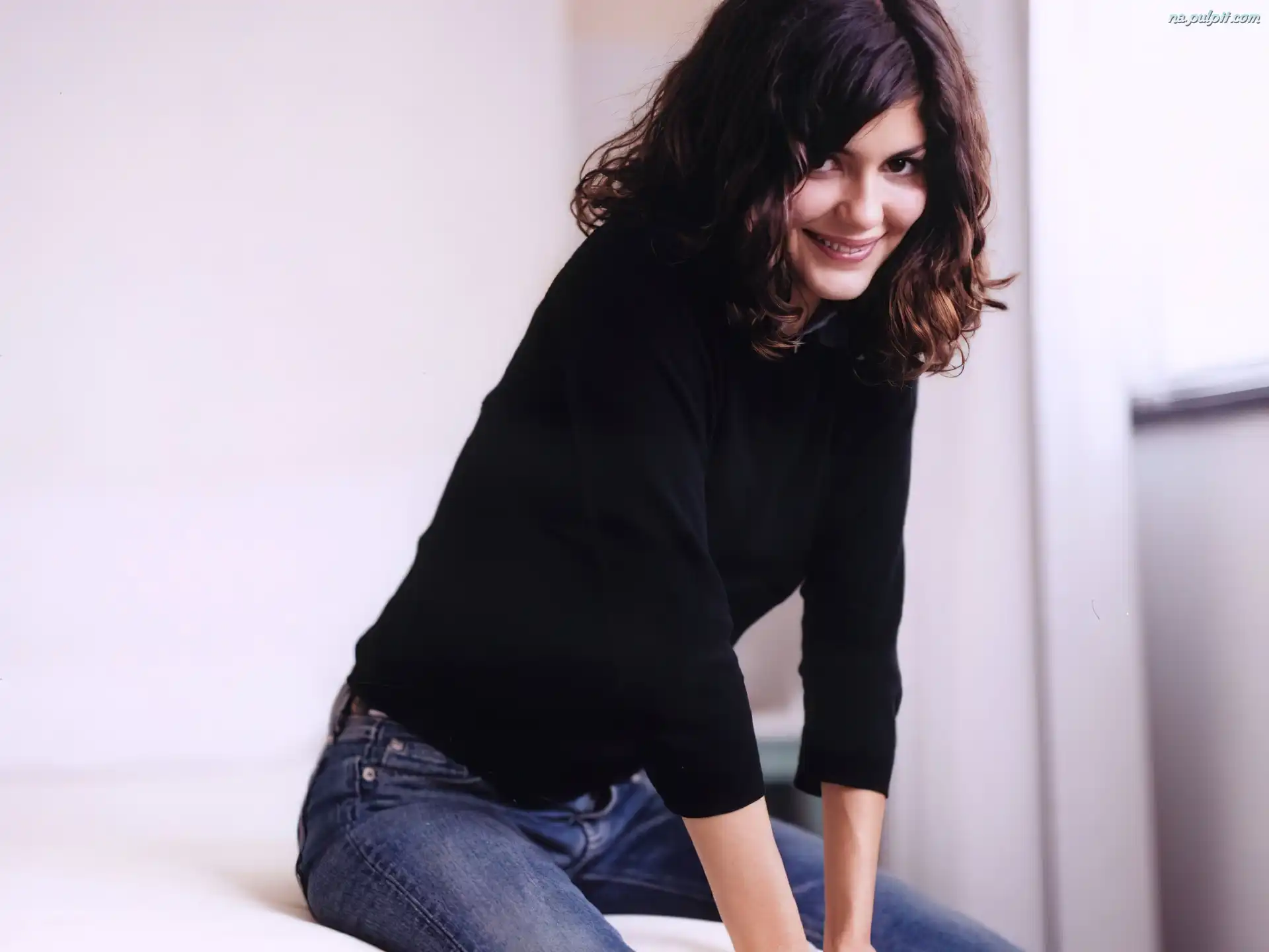 jeansy, Audrey Tautou, czarna bluzka Na Pulpit