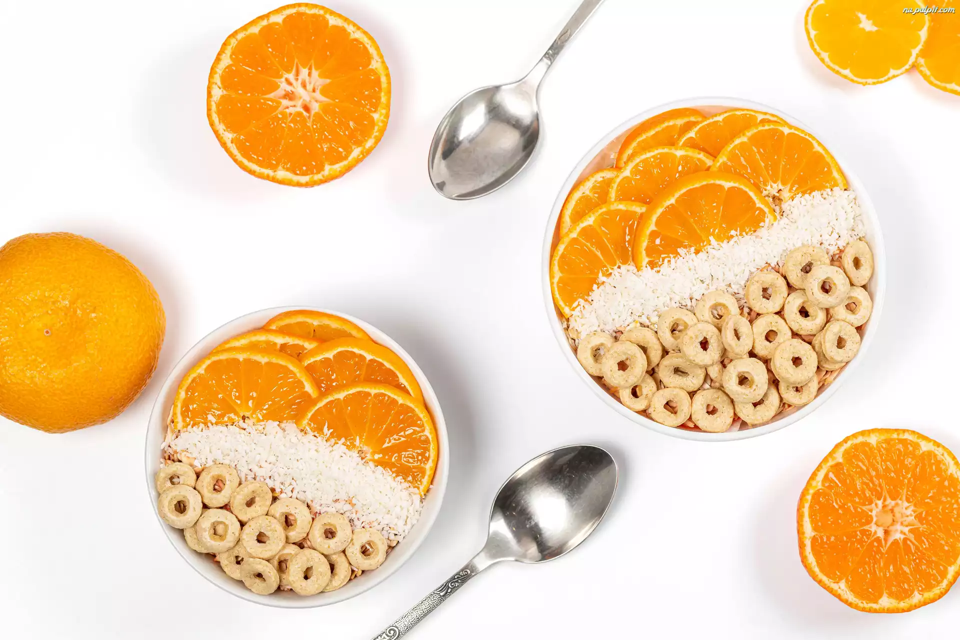Łyżeczki, Miseczki, Owsianka, Jedzenie, Pomarańcze
