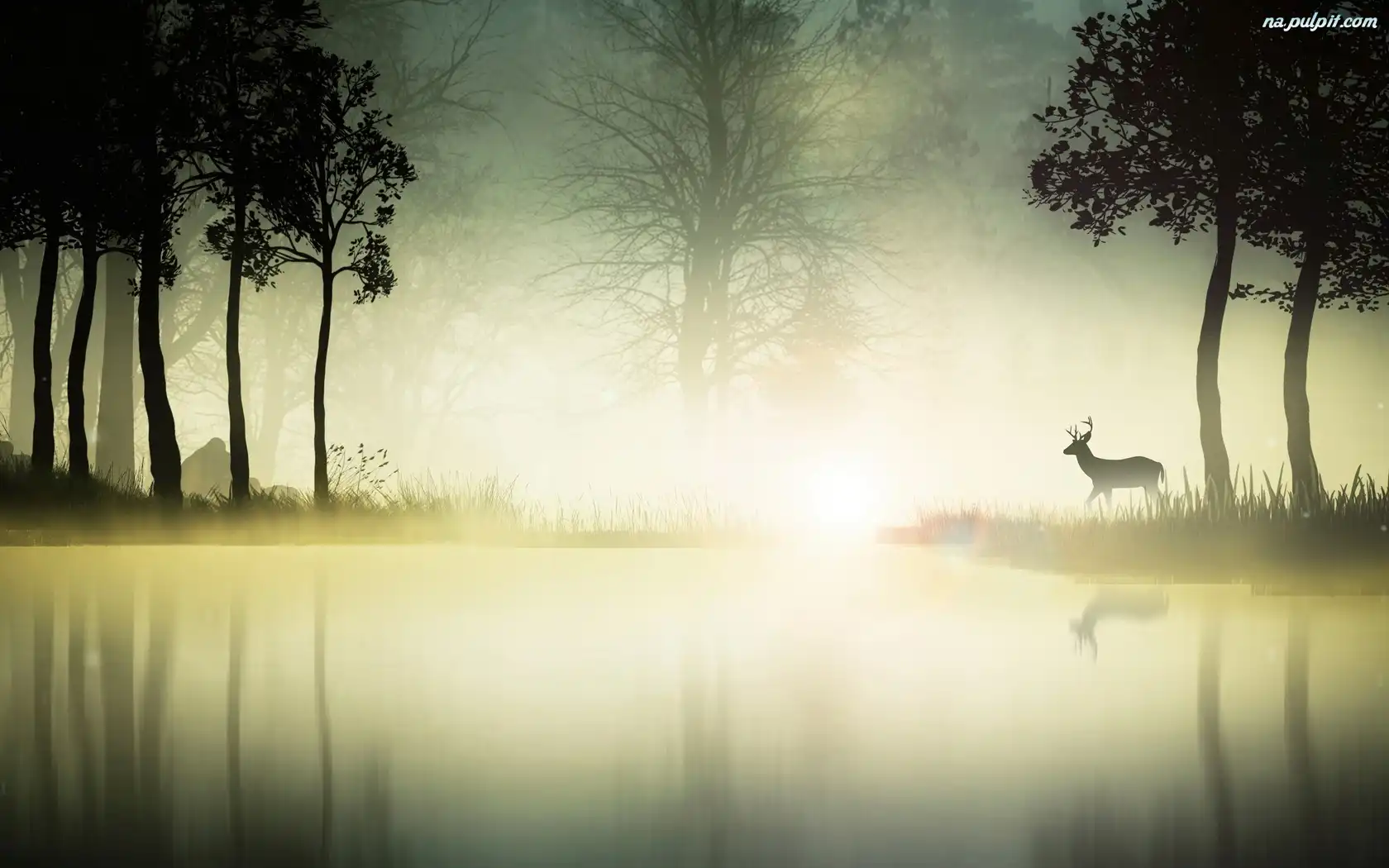 Jeleń, Mgła, Jezioro, Las Na Pulpit